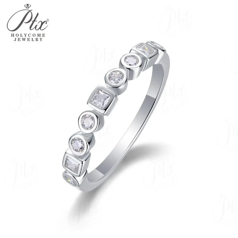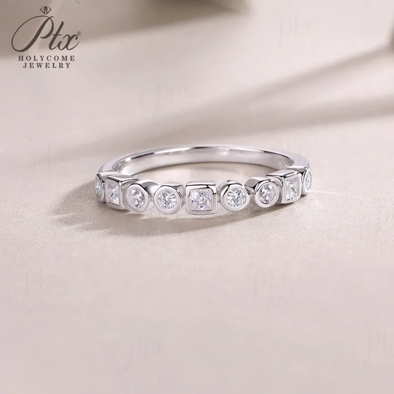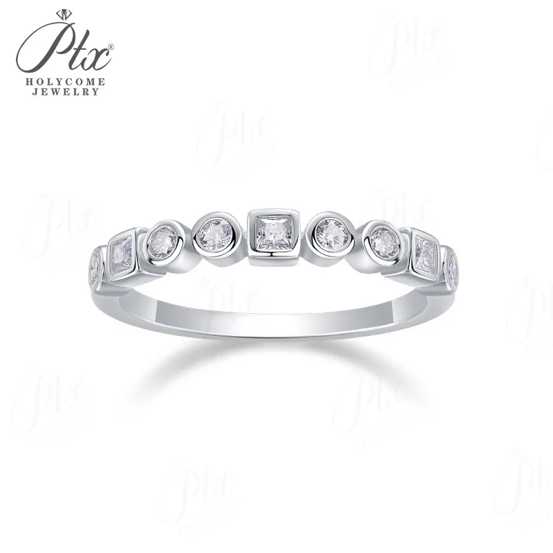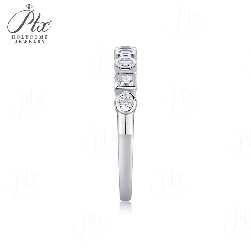 Moissanite Ring D Color S925 Setting Combined Round-Cut & Princess-Cut Ideal for Daily Wear & Perfect Gift Choice