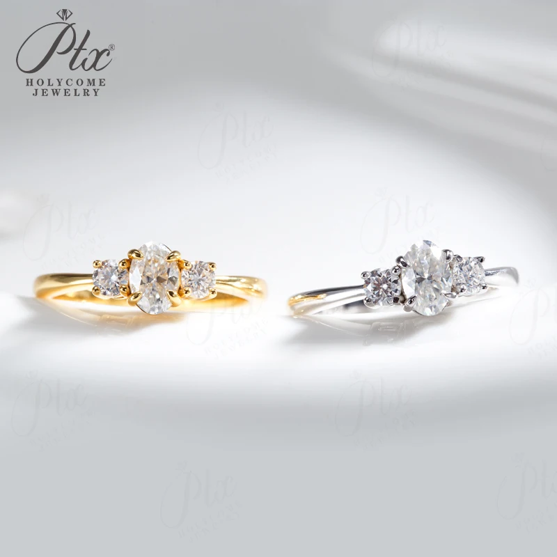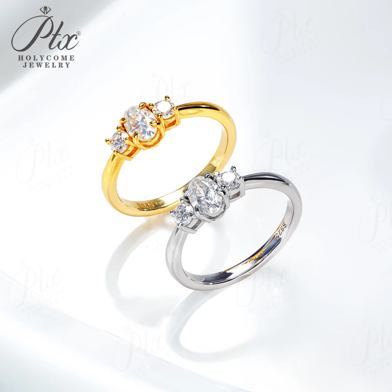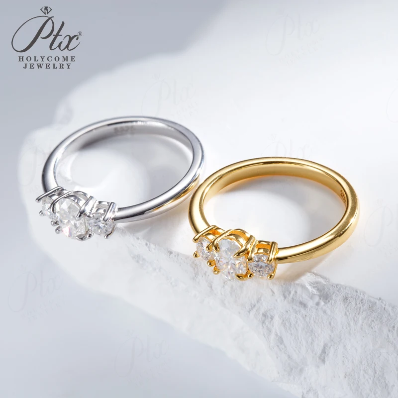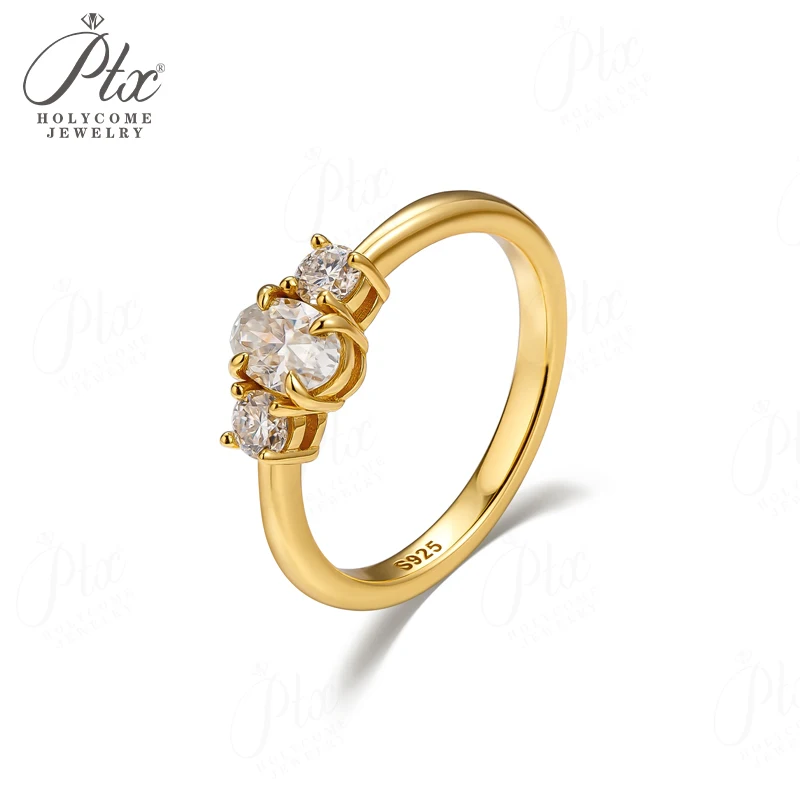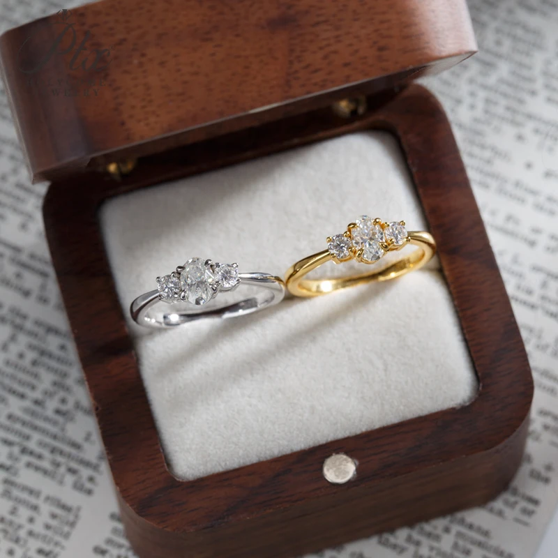 Moissanite Ring Oval Round Cut D Color VVS1 Clarity 925 Sterling Silver Plated with 18K Gold Birthday Gift Jewelry for Woman