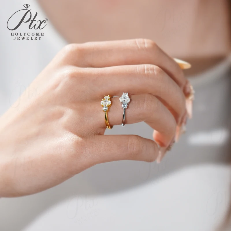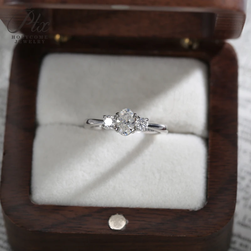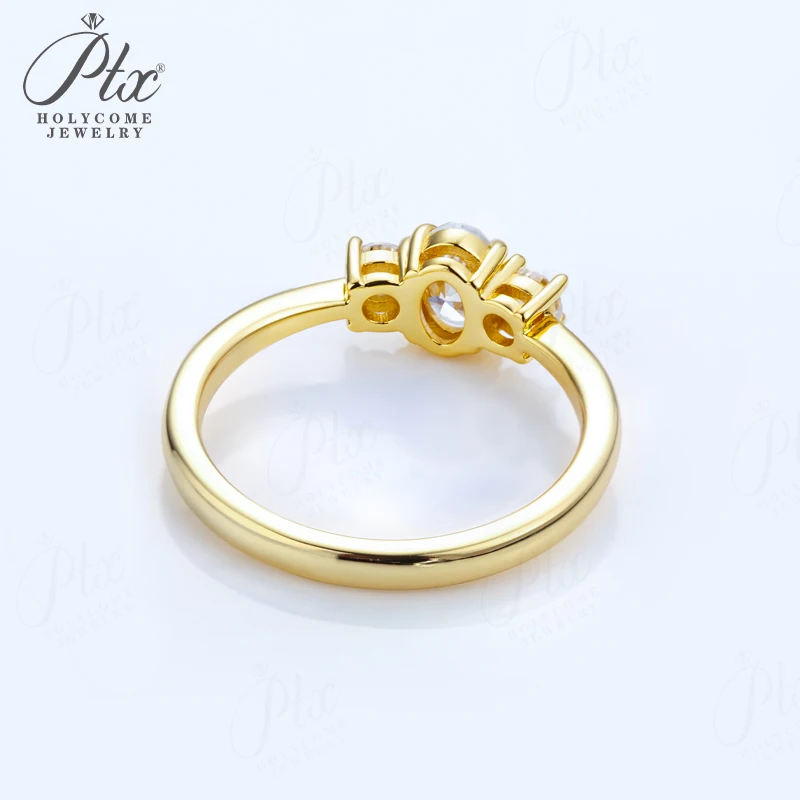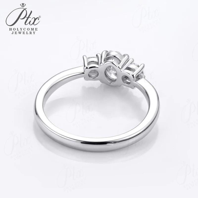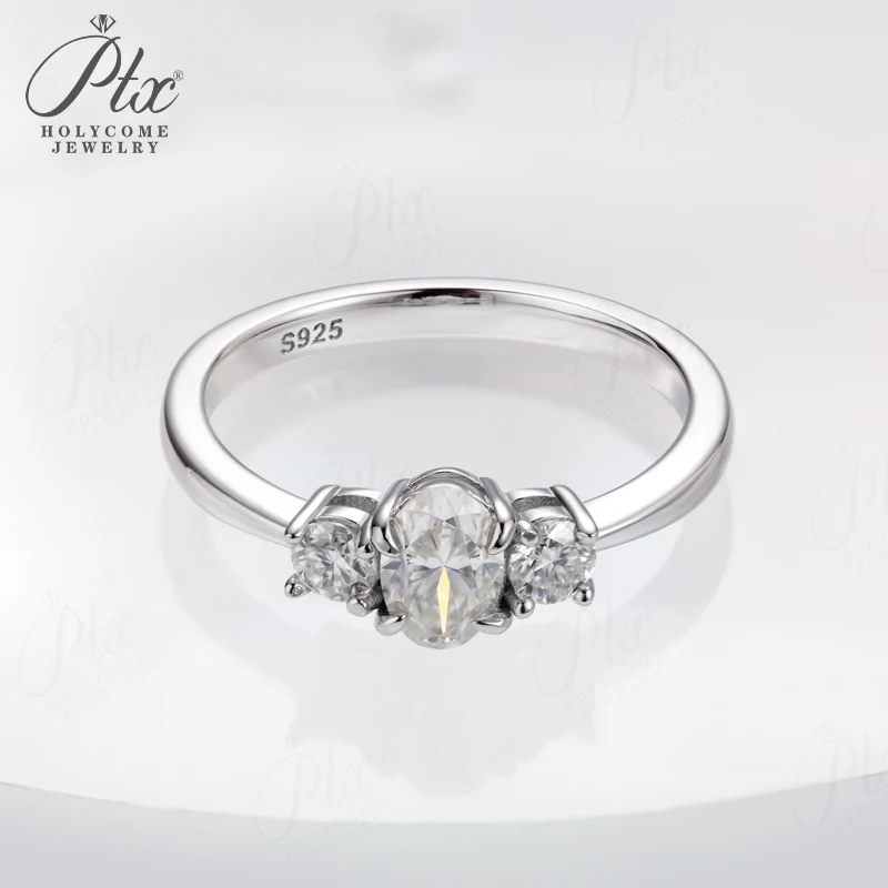 Moissanite Ring Oval Round Cut D Color VVS1 Clarity 925 Sterling Silver Plated with 18K Gold Birthday Gift Jewelry for Woman
