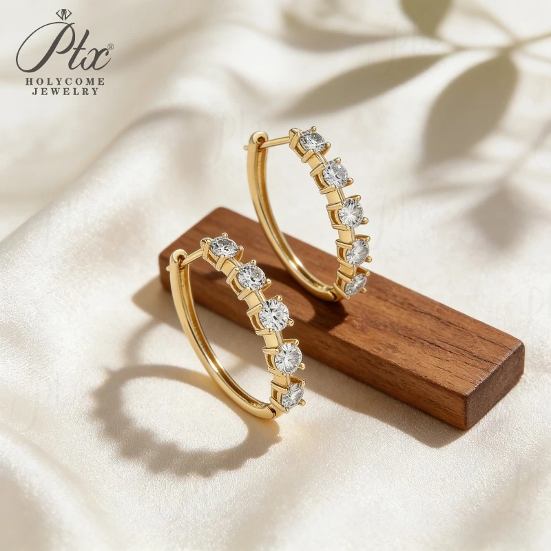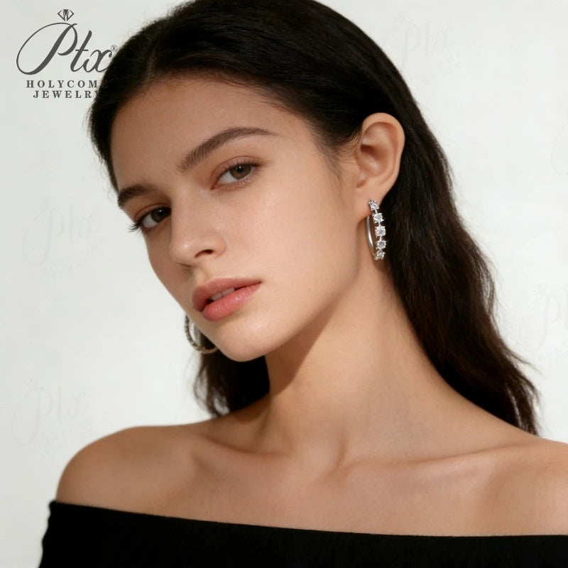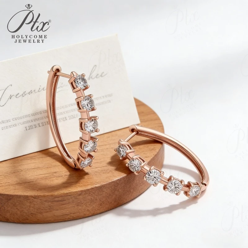 2ct D Color Circle Hoop Moissanite Earrings Round Cut VVS1 S925 White Yellow Rose Gold Anniversary Wedding Gift for Women