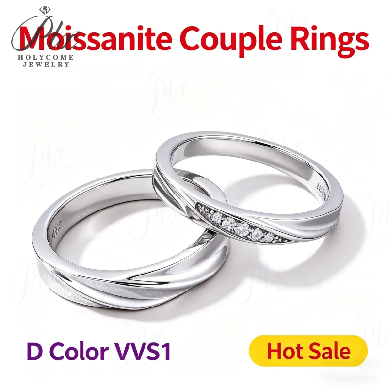 Moissanite Couple Ring S925 Sterling Silver D Color VVS1 Round Cut GRA Certified Hypoallergenic Direct Factory Daily Jewelry Ideal Gift for Her