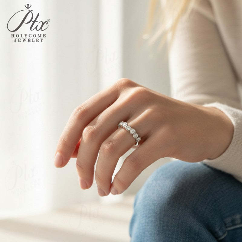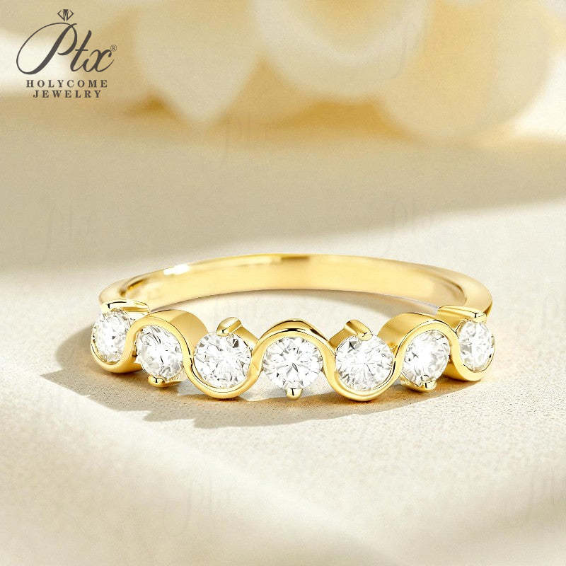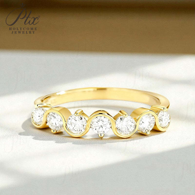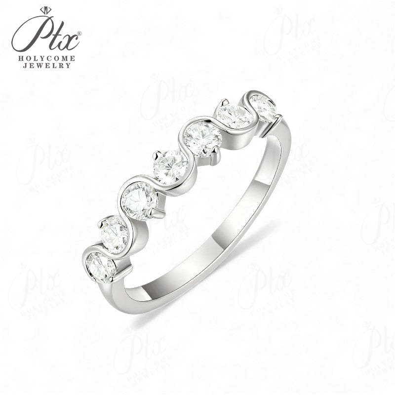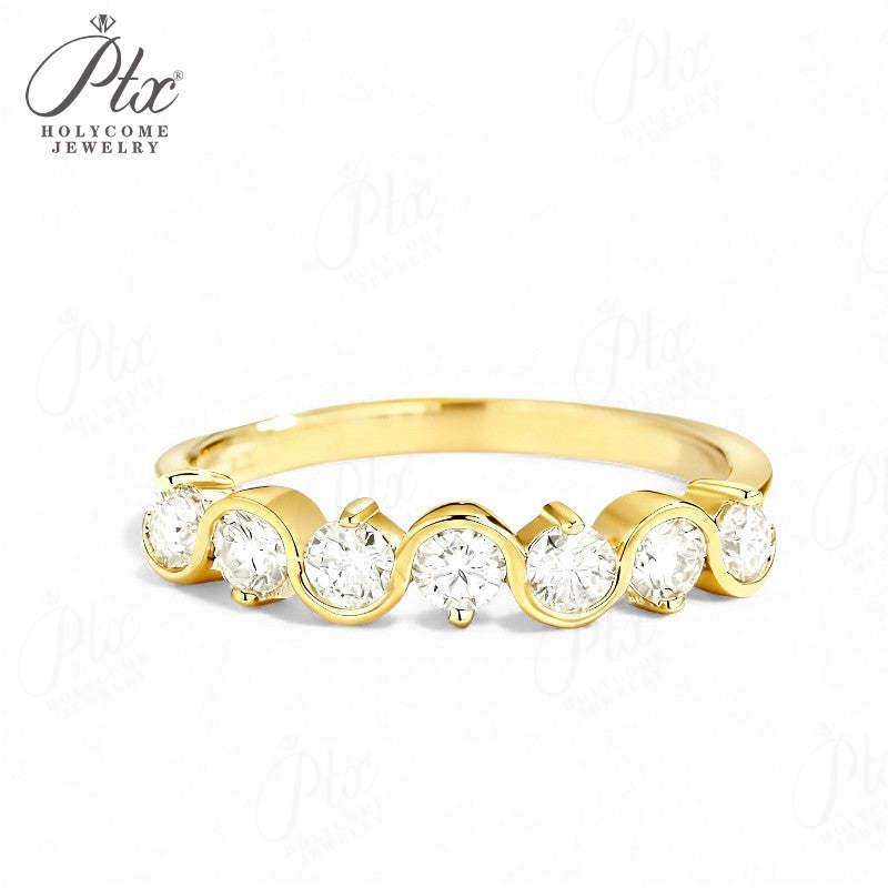 Diamond Eternity Ring with 0.7CT D Color Round Moissanite 10k 14k 18K Gold Plated 925 Silver for Women Wedding Engagement Jewely