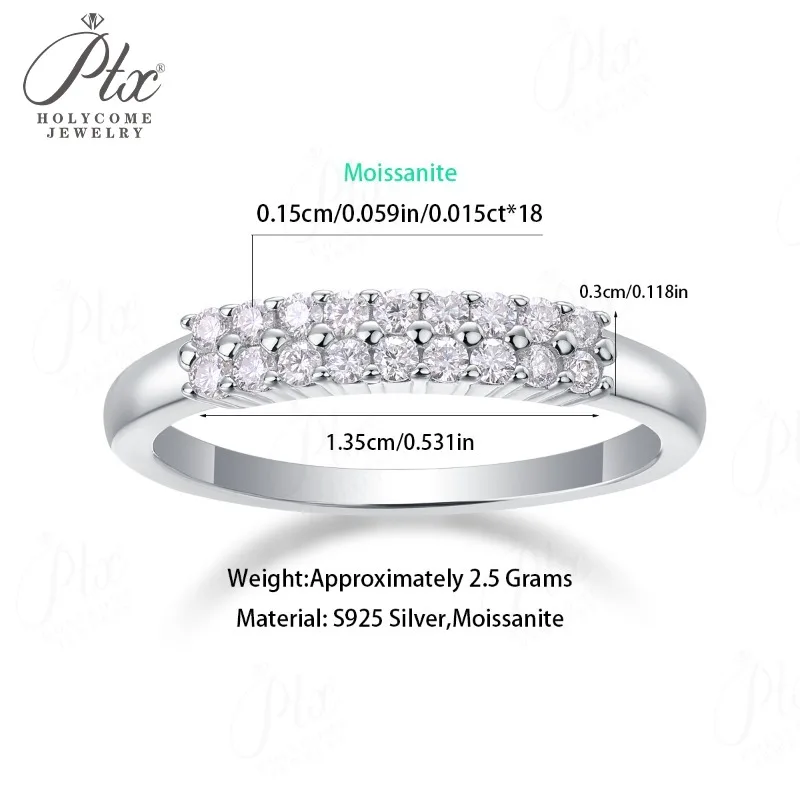 1.5mm Moissanite Ring Round Brilliant Cut Wedding Ring D Color VVS1 S925 High-End Ladies' Jewelry Gift for Anniversary