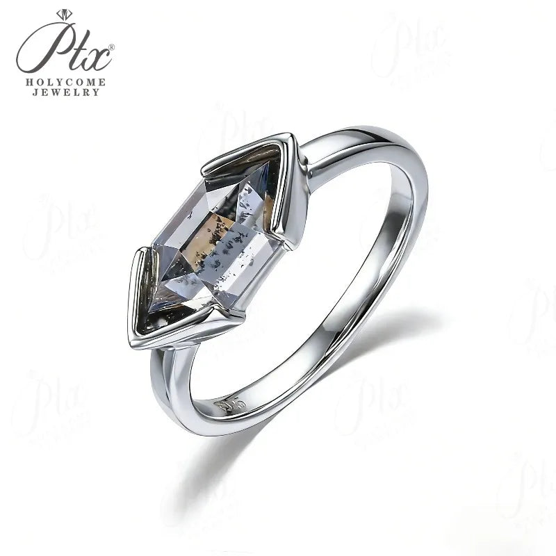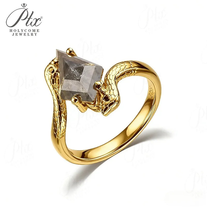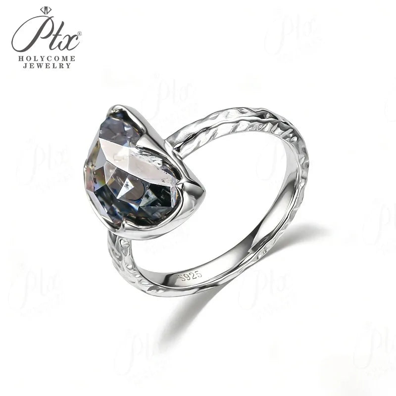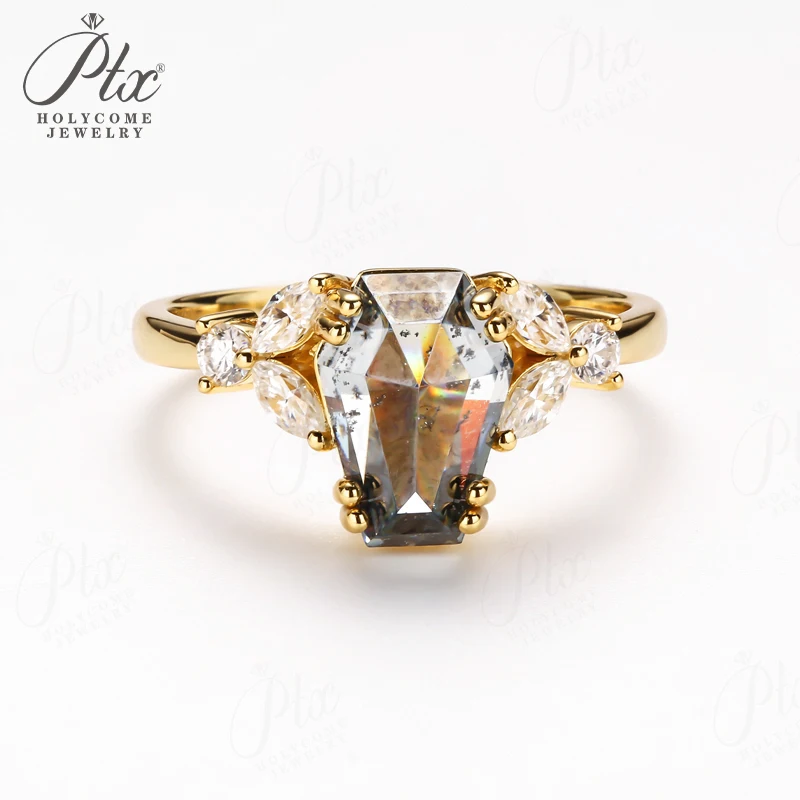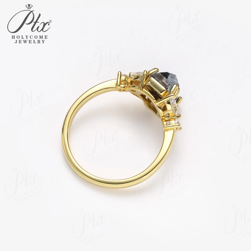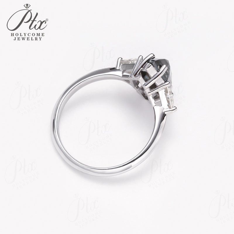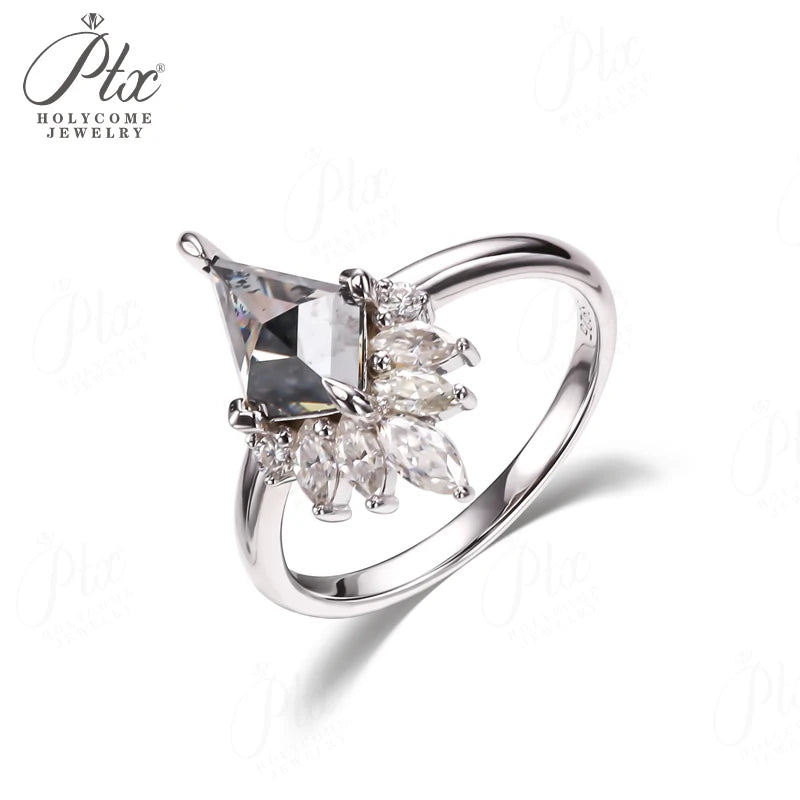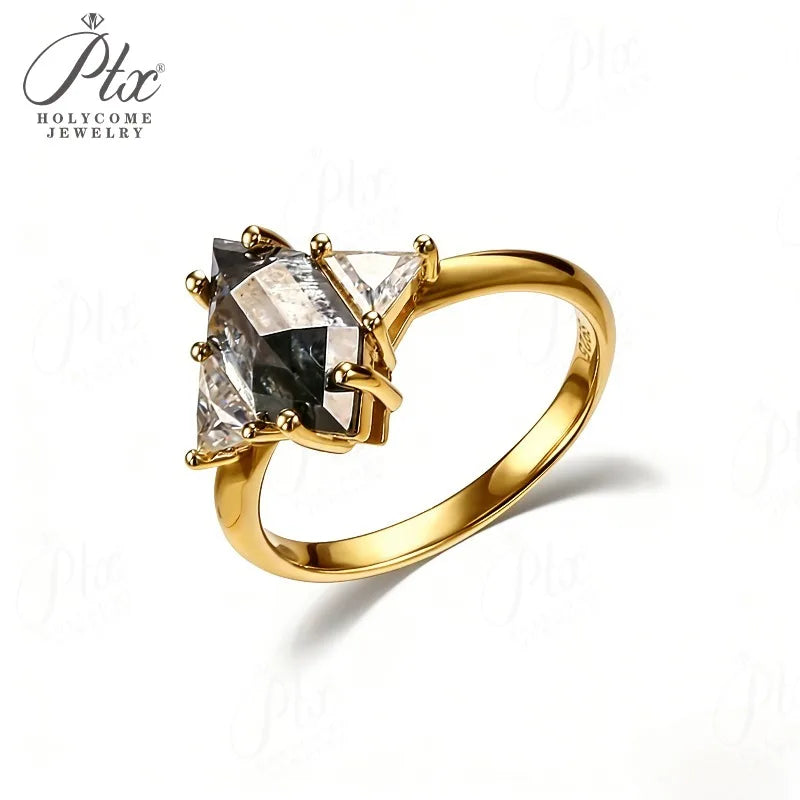 Engagement Ring Salt and Pepper Moissanite Diamond Pear Cut 925 Sterling Silver Plated with 18k Gold Wedding Jewelry Vintage