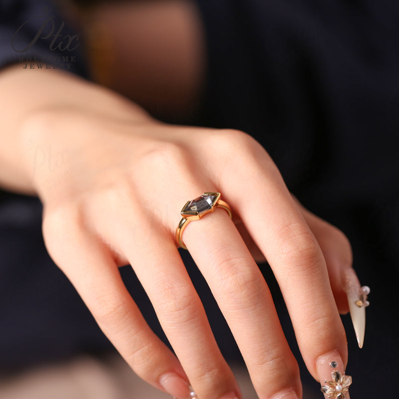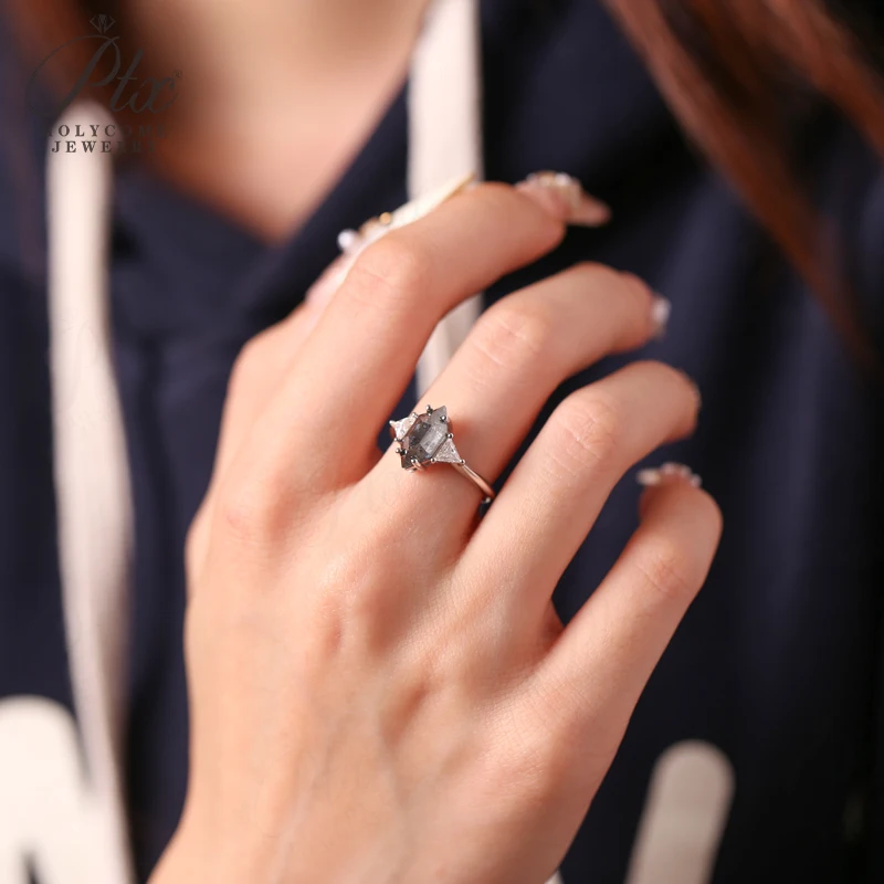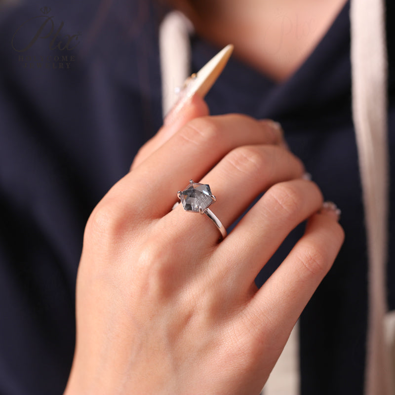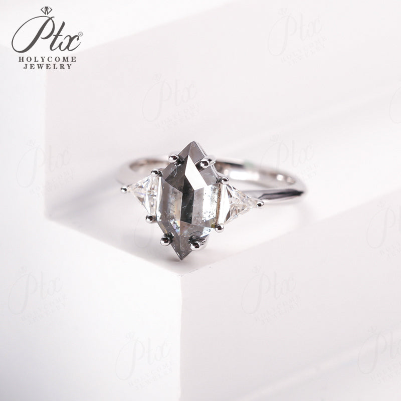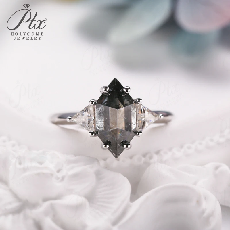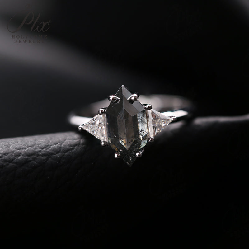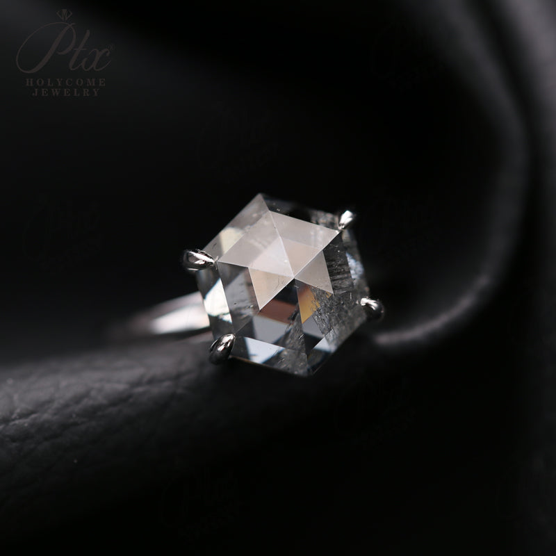 Salt and pepper moissanite ring, each gemstone is a unique piece, with an exclusive design that will never be replicated.