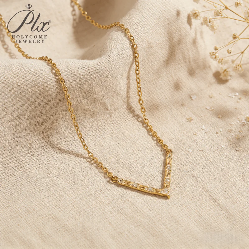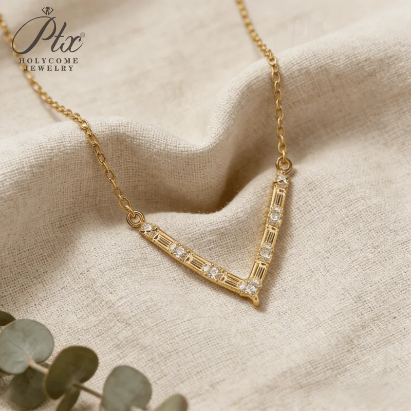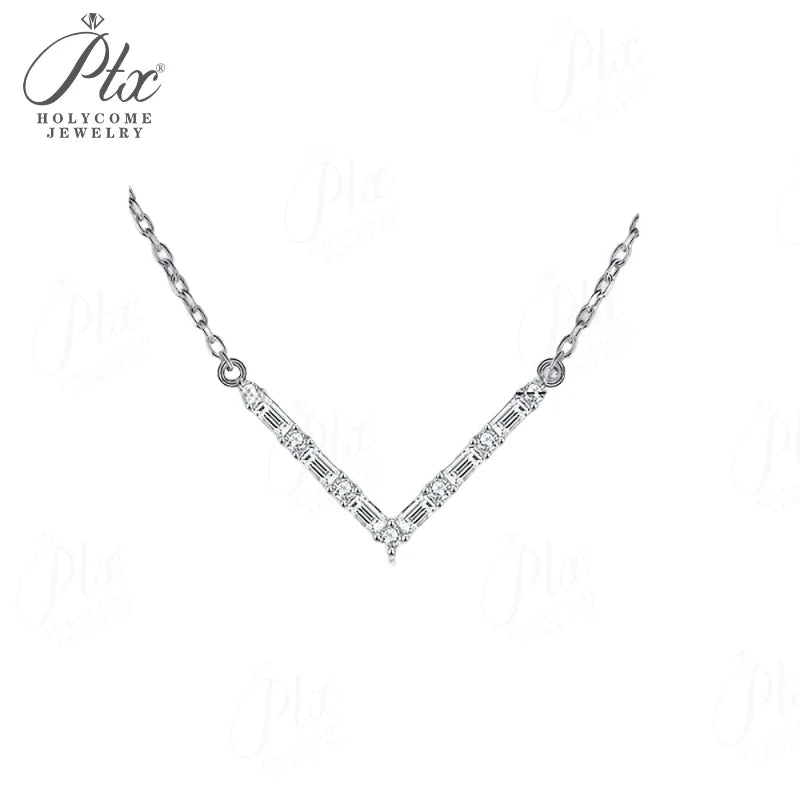 V-Shaped Necklace with Emerald-Cut Round D-Color Moissanite GRA S925 Collar Necklace A Top Choice for Ladies' Daily Commute