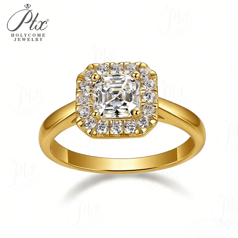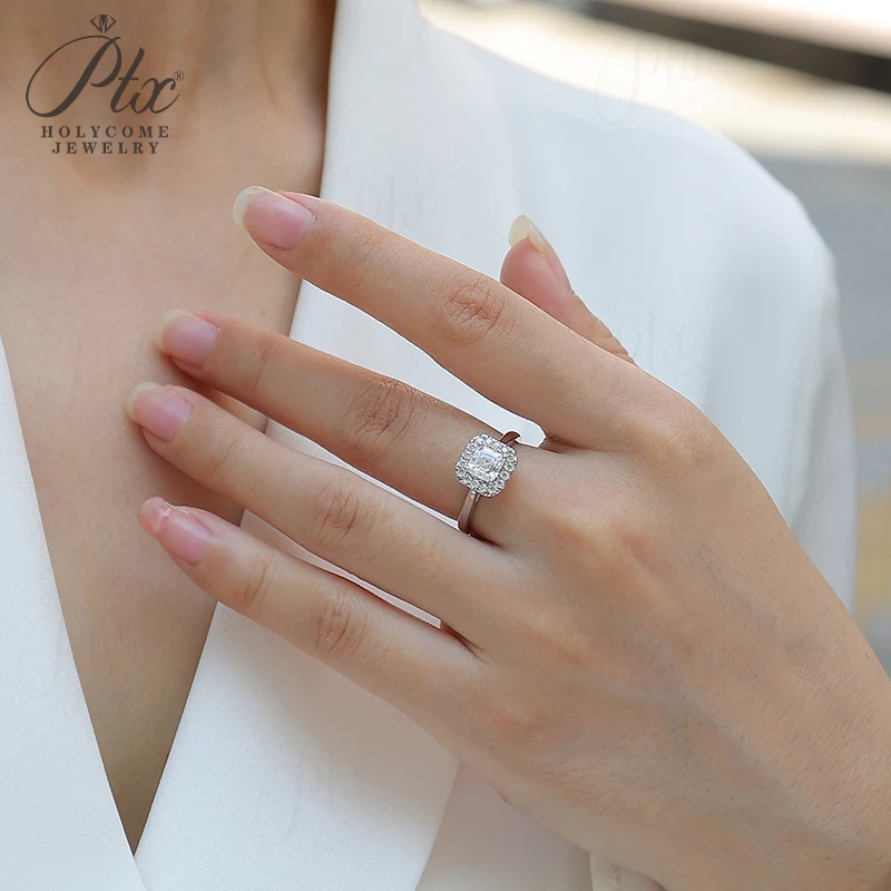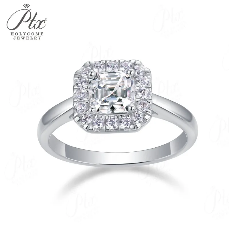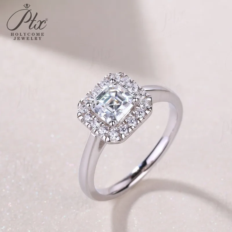 0.9CT Moissanite Ring Asscher Cut S925 D Color VVS1 Clarity Hypoallergenic Jewelry Sparkling Ring Ideal for Women's Daily Wear