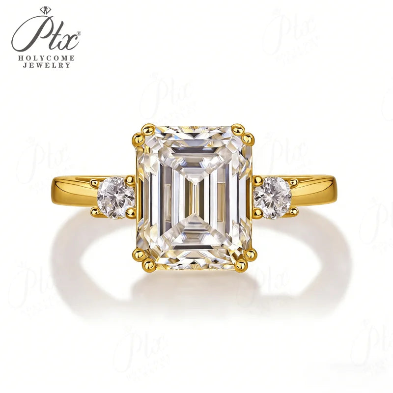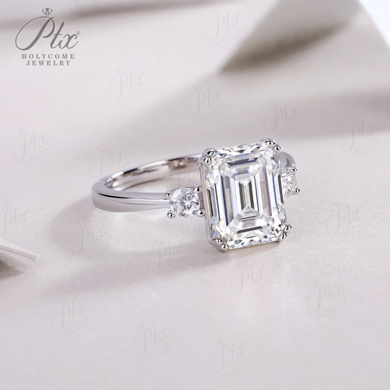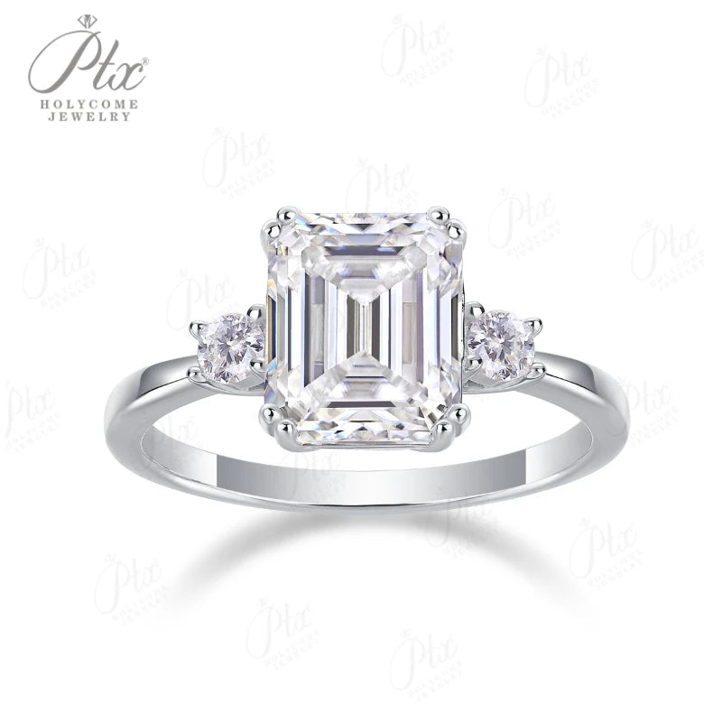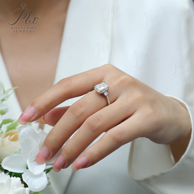 Moissanite Ring Emerald Cut D Color S925 with GRA Certification High-End Jewelry Design Suitable for Anniversary Gifts
