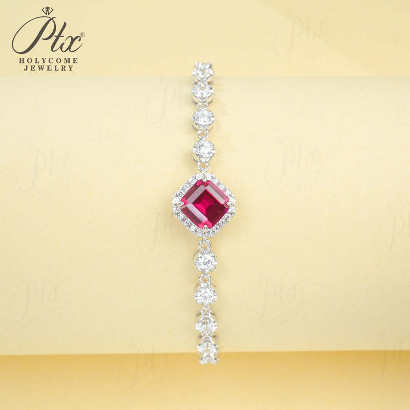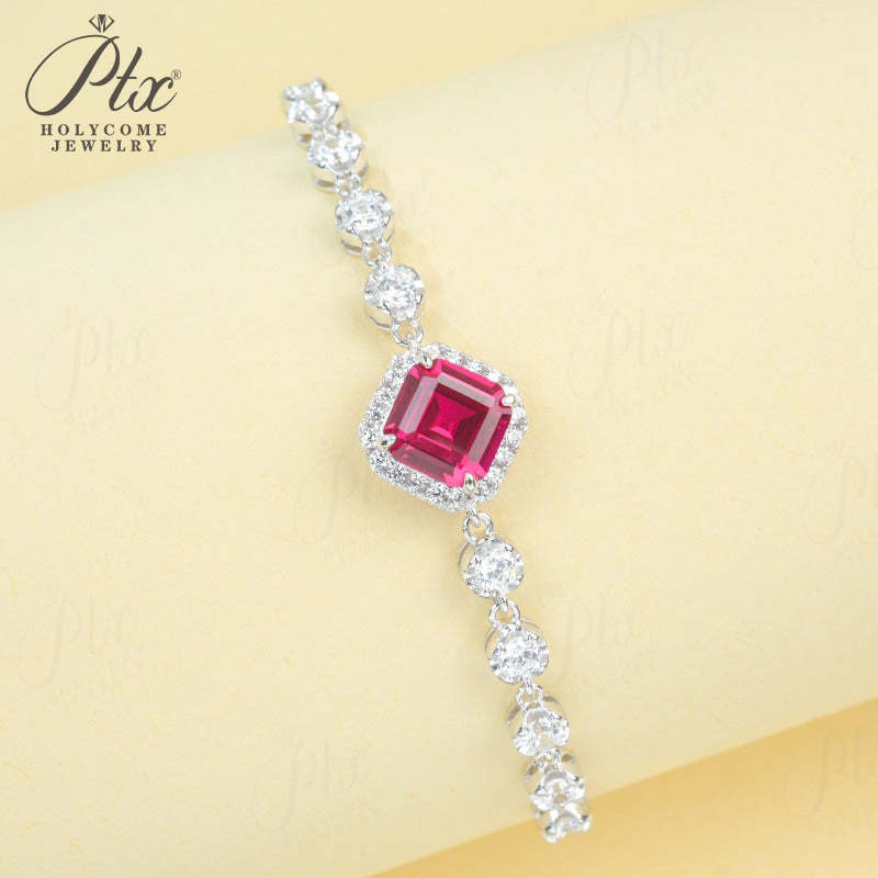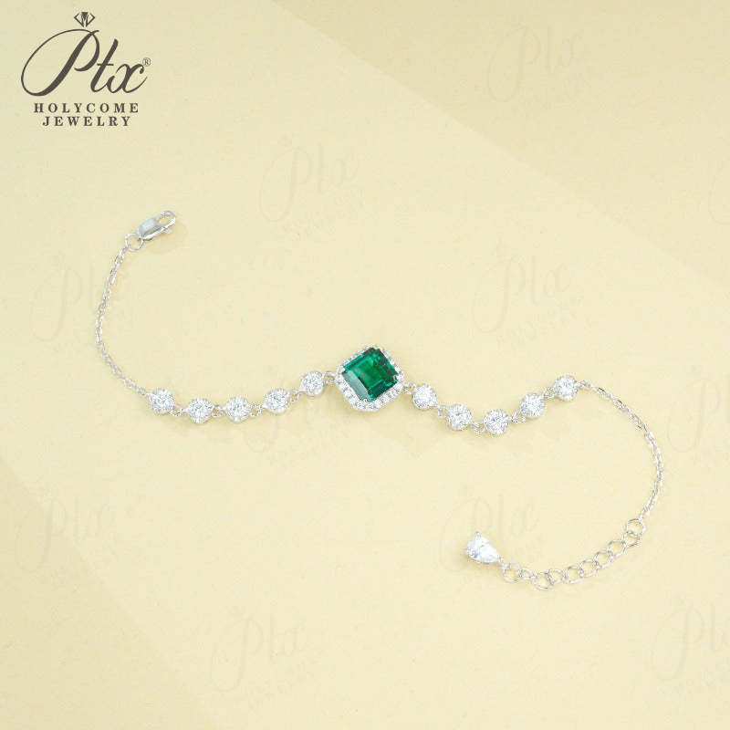 Lab Grown Emerald Ruby Asscher Cut Bracelet White Gold Geometric Bangle Fine Jewelry Anniversary Graduation Gift