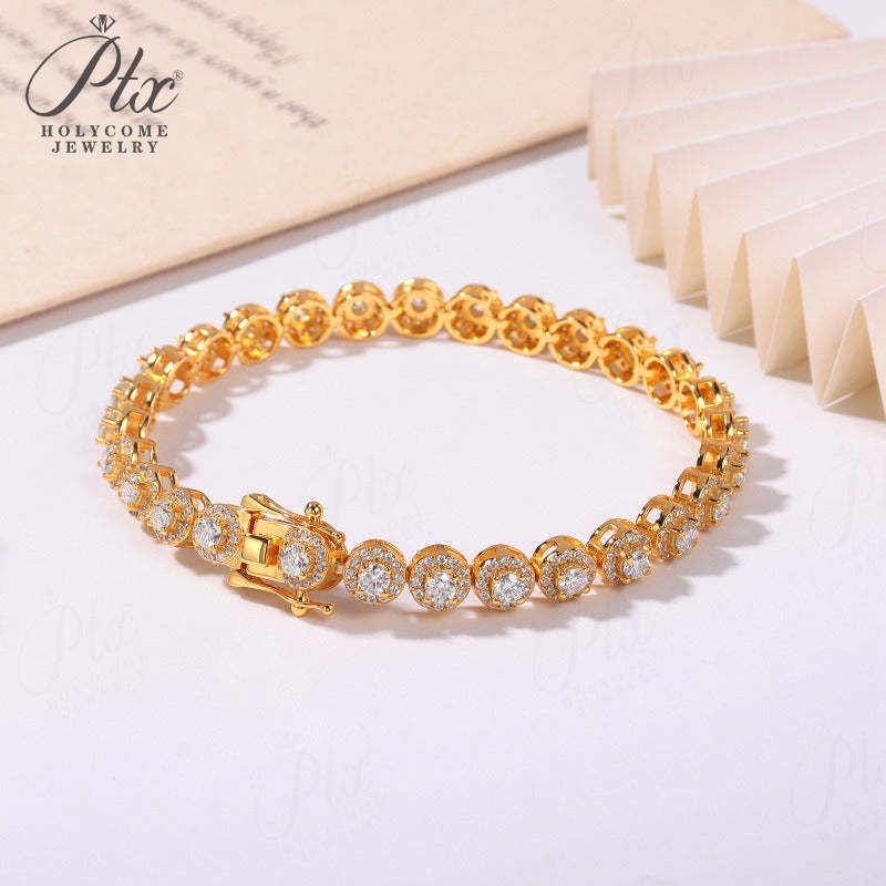 Round Bracelet Adorned with Exquisite Moissanite Accents Women's Style 925 Silver Material FashionableHoliday Gift