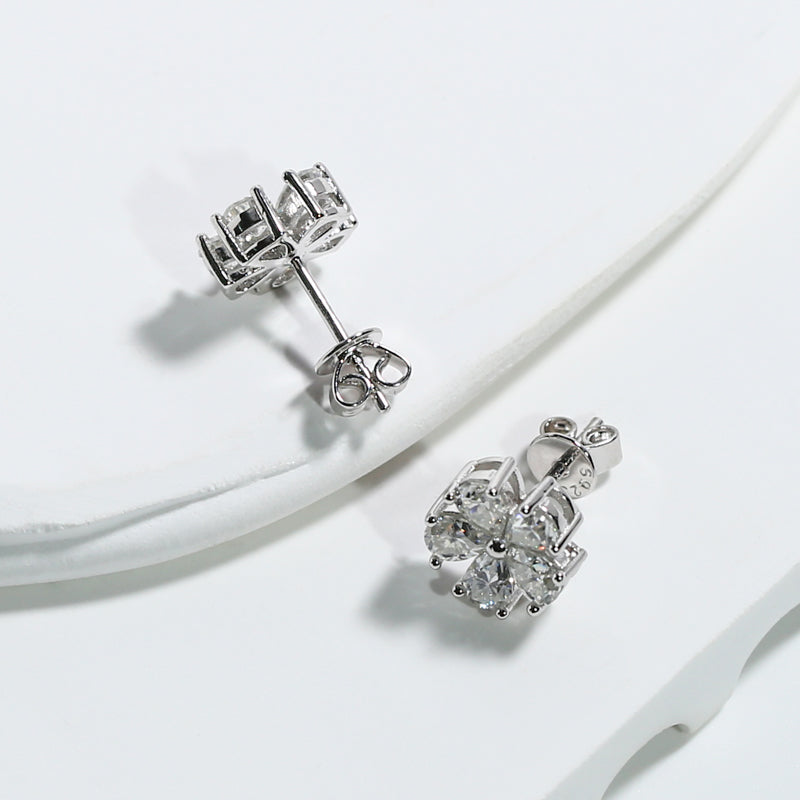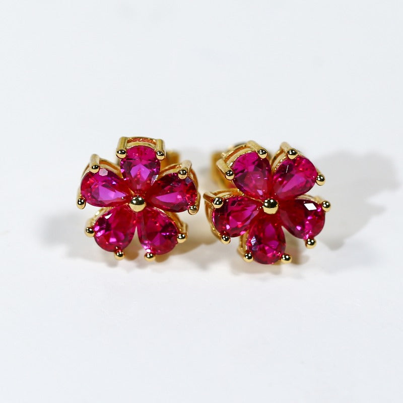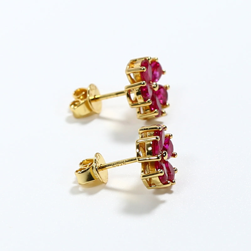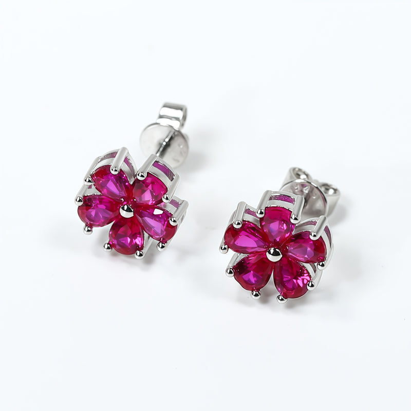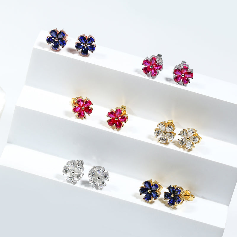 Flower-Shaped Earring Jewelry with Moissanite/Sapphire/Ruby 925 Sterling Silver Plated Screwback Earrings for Women