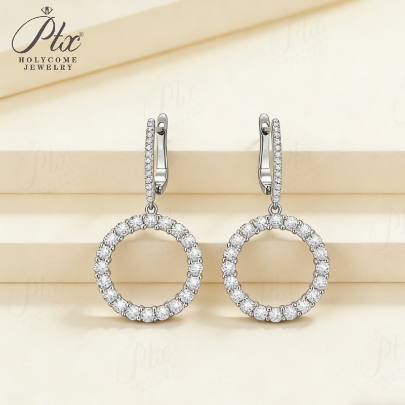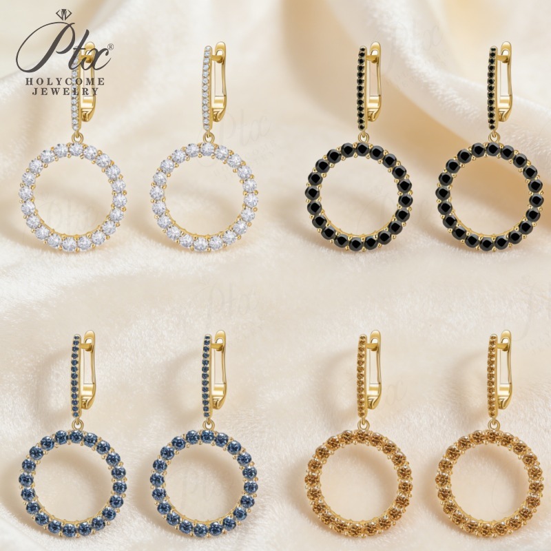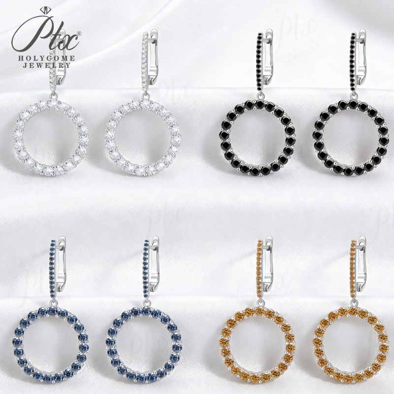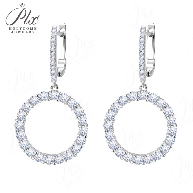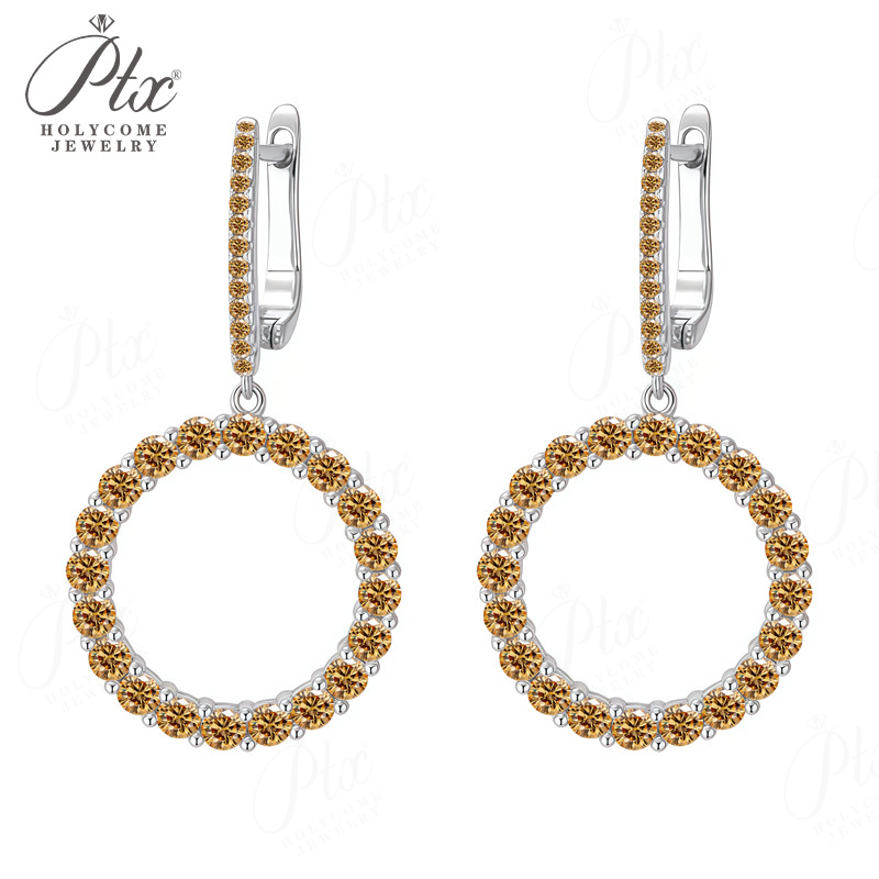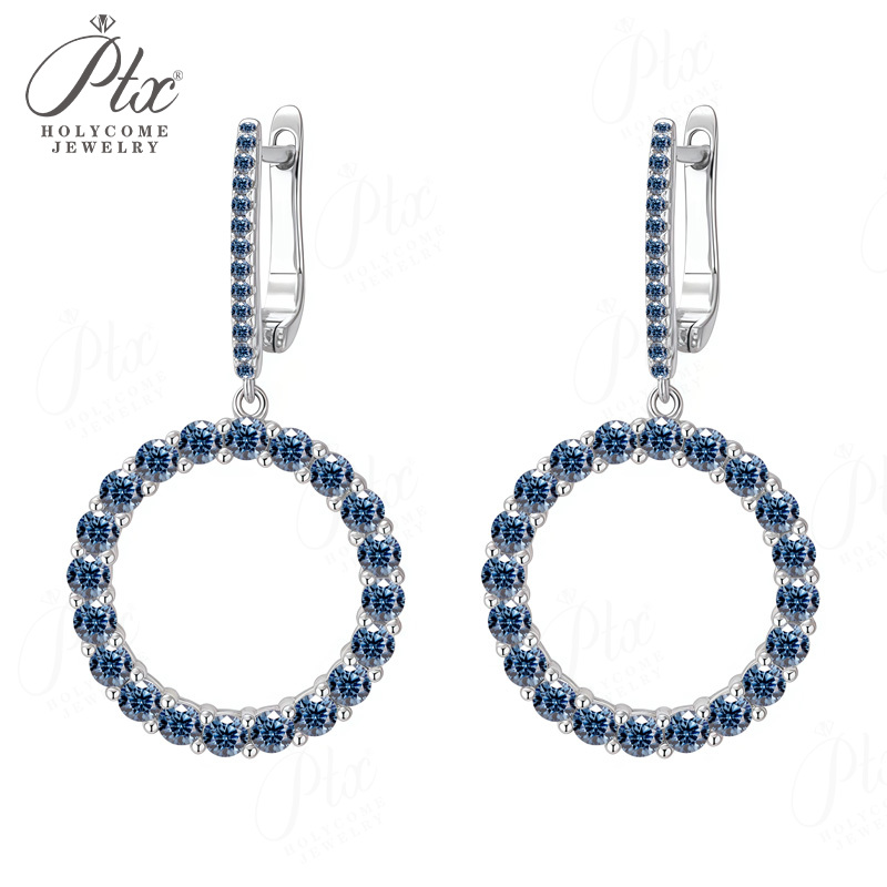 Hoop Earrings 2.6CT D White/Black/Champagne/Vivid blue Round Moissanite S925 Silver Plated for Fishion Party Gift Hypoallergenic
