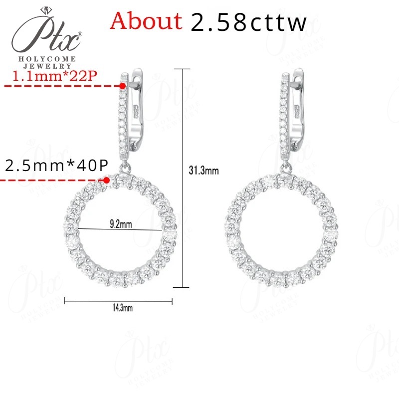 Stone Size: 2.5mm-40pcs 1.1mm-22pcs total 2.6CT one pair