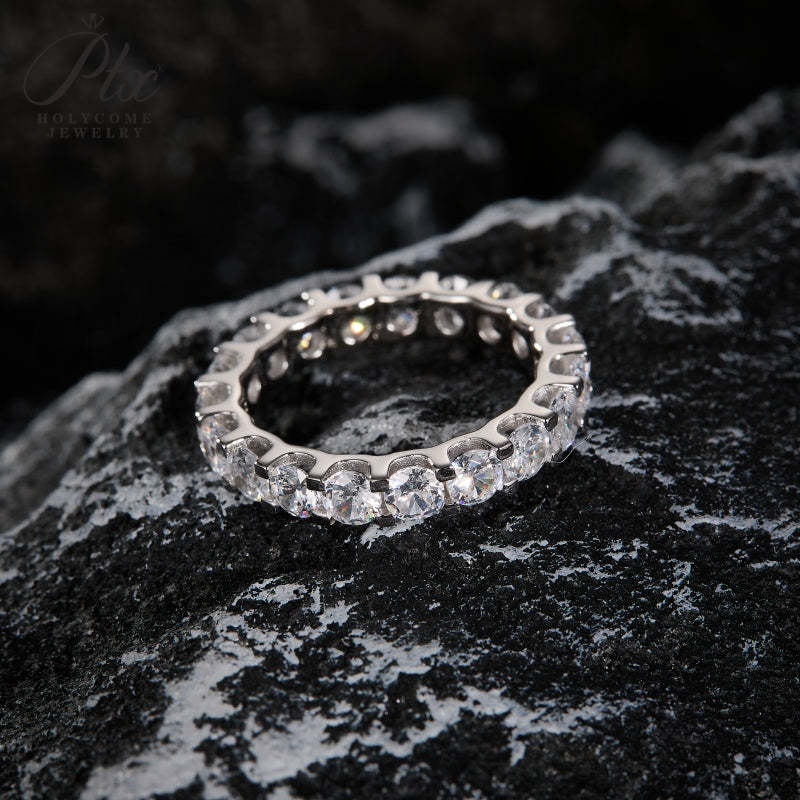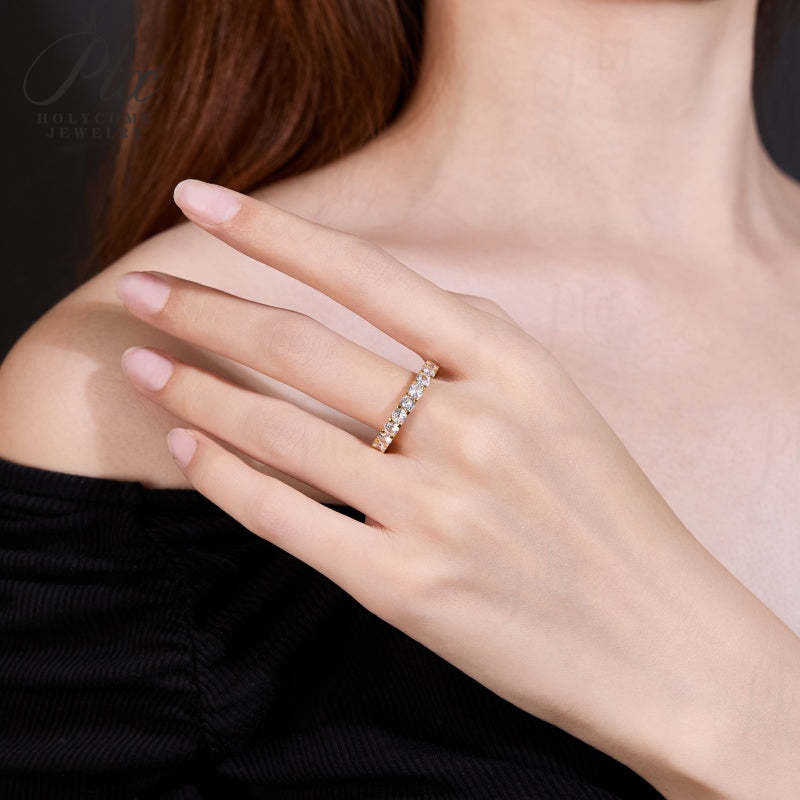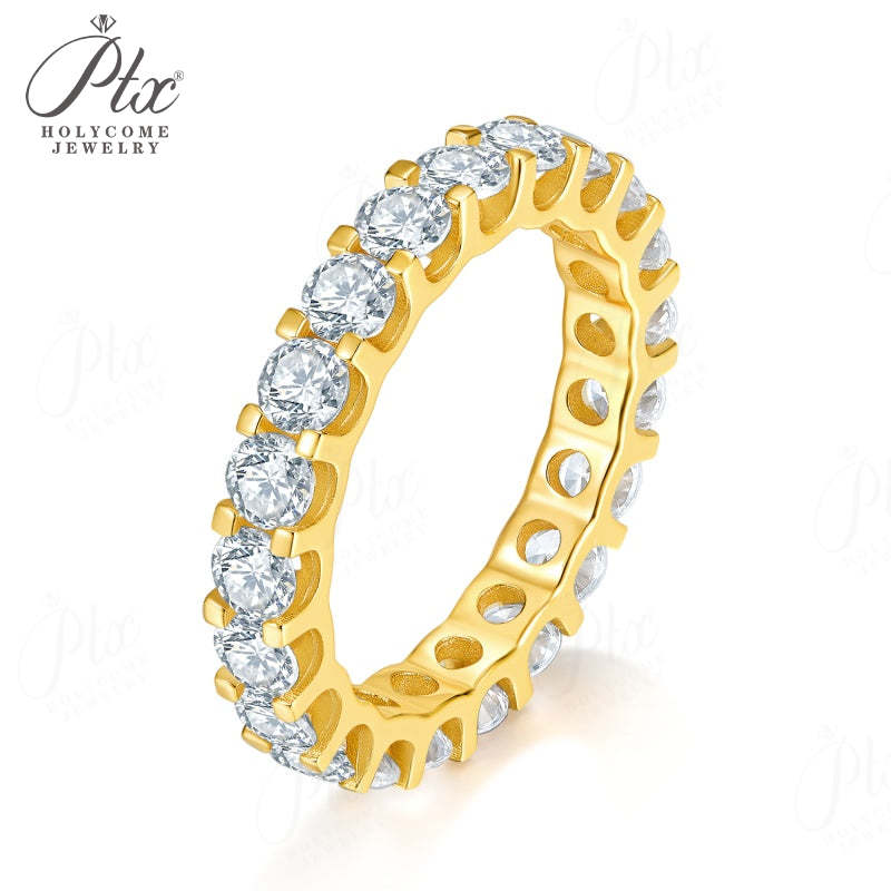 Moissanite Wedding Band Full 3mm Eternity Engagement Rings Ring White Gold Sterling Silver Yellow Gold For Women