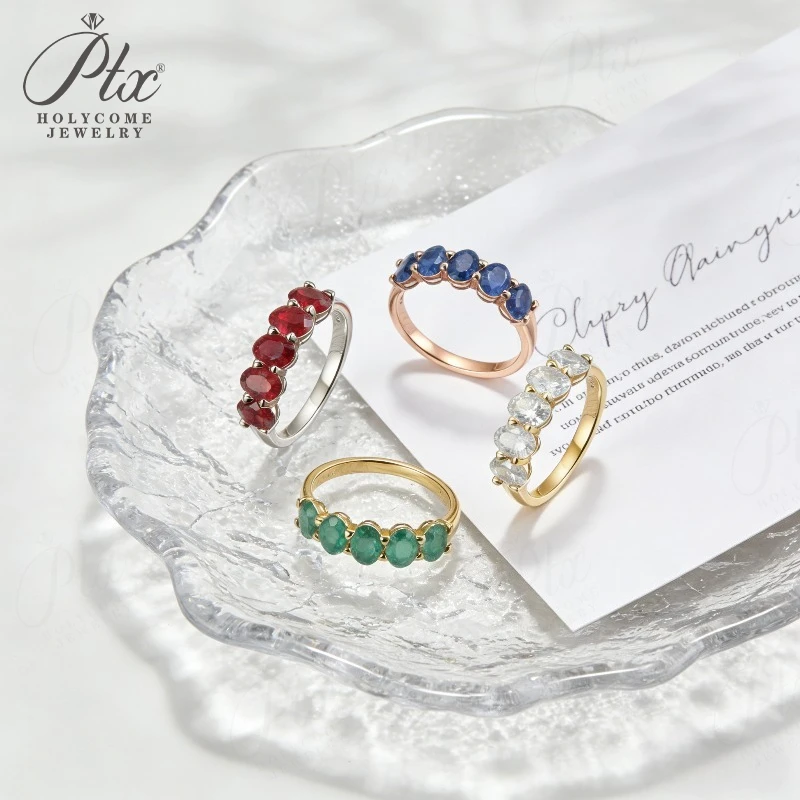2.5ct Oval Cut Moissanite and Created Emerald Sapphire Ruby Ring VVS1 S925 White Yellow Rose Gold Fine Jewelry for Women