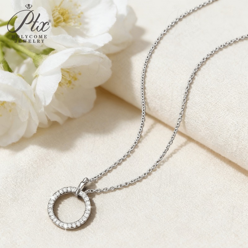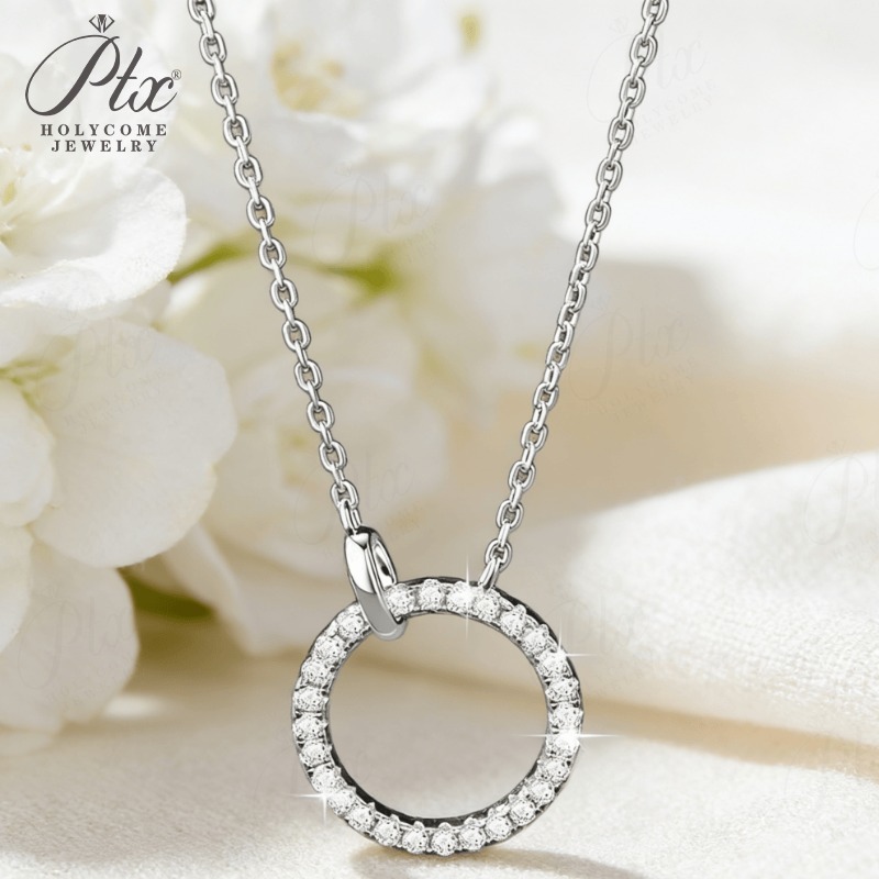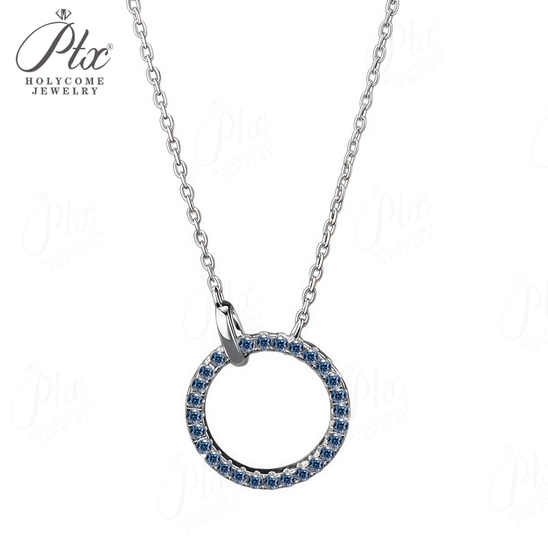 Circle Pendant Necklace 2CT D Color/Black/Champagne/Vivid Blue Round Moissanite S925 Plated Chain Perfect for Daily Party