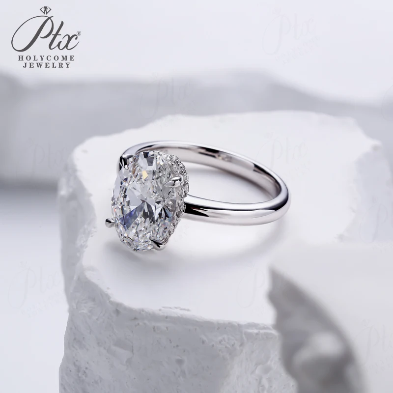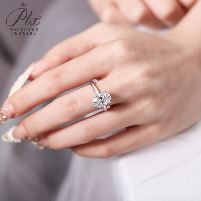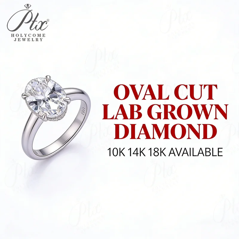 Lab Grown Diamond Ring 1ct/2ct/3ct Oval Cut D VVS1 10K/14K/18K Gold Dainty Luxury Daily Wear Jewelry