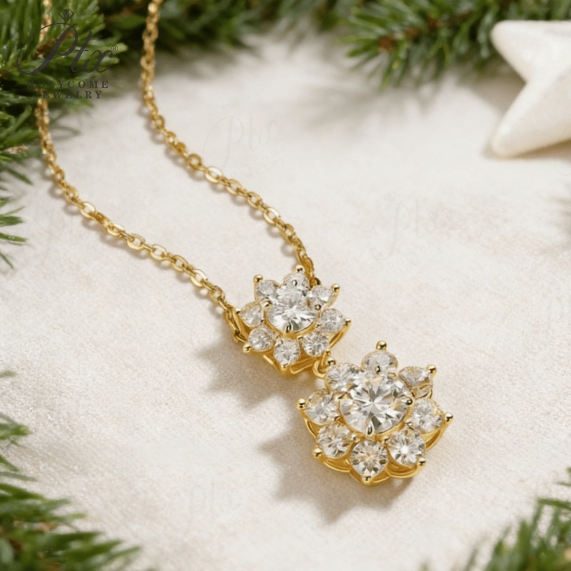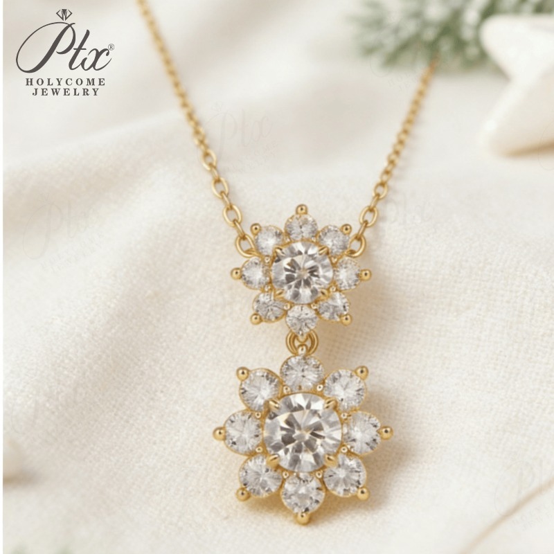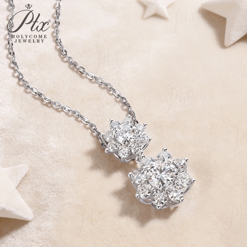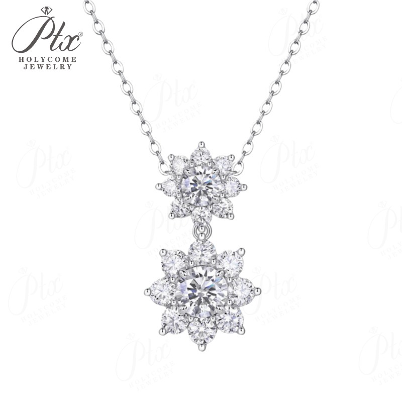 Sun Double-Flower Necklace D Color Round Moissanite Diamond S925 Silver Plated Dainty Chain for Enegament Party Daily Perfect