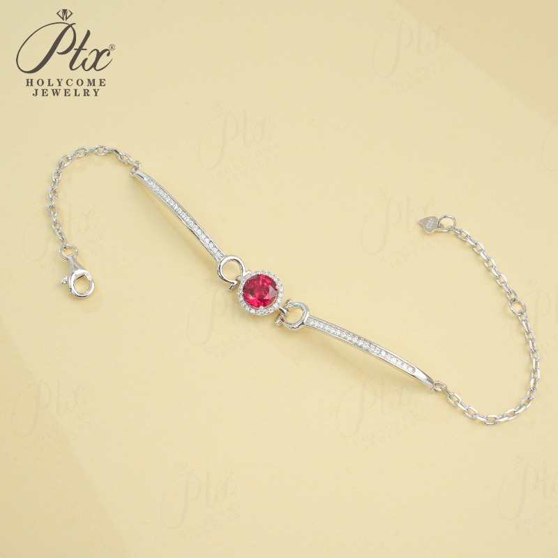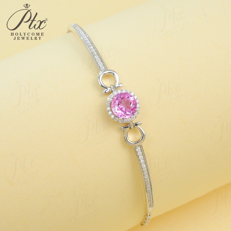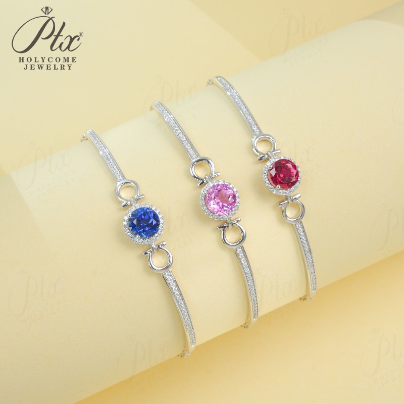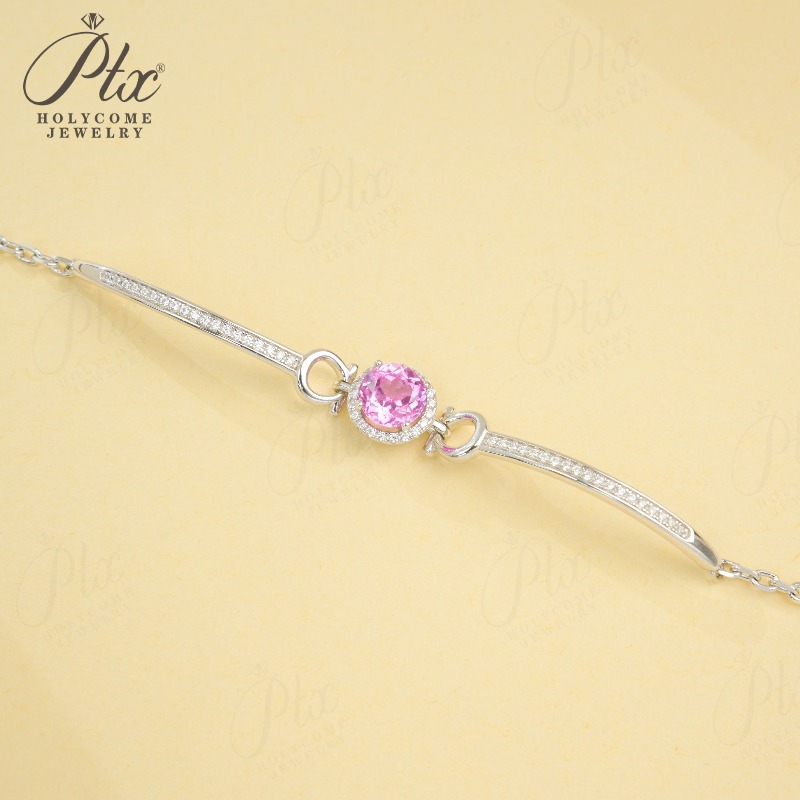 Lab Grown Ruby Sapphire Padparadscha Round Brilliant Cut Bracelet White Gold Fine Jewelry Wedding Gift