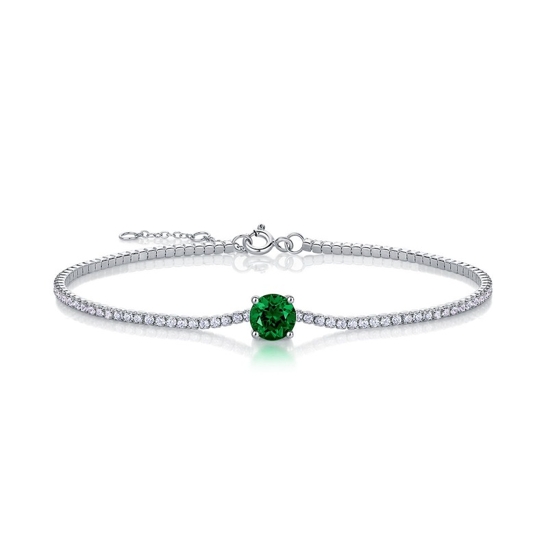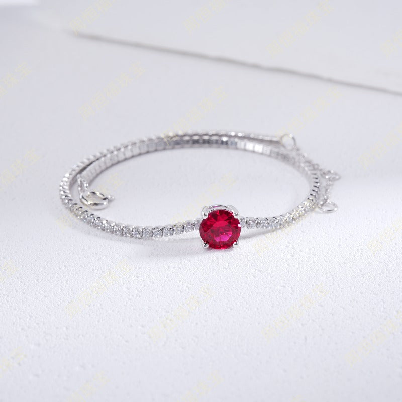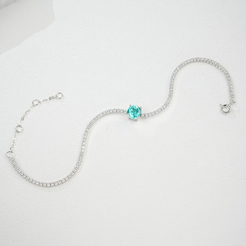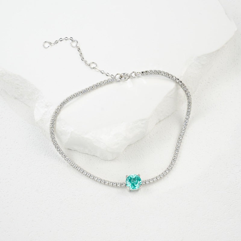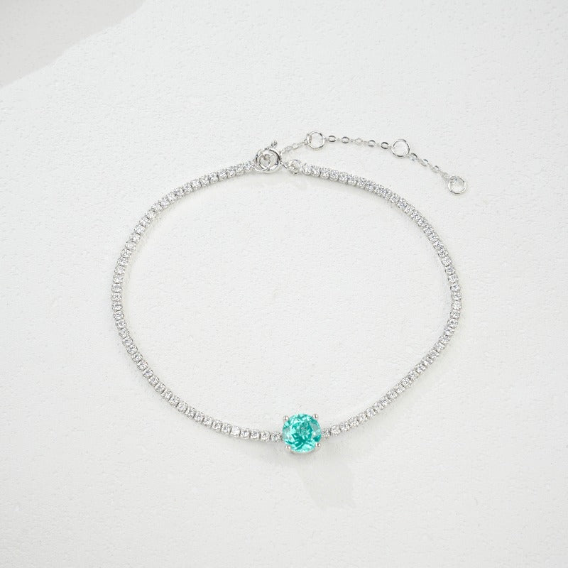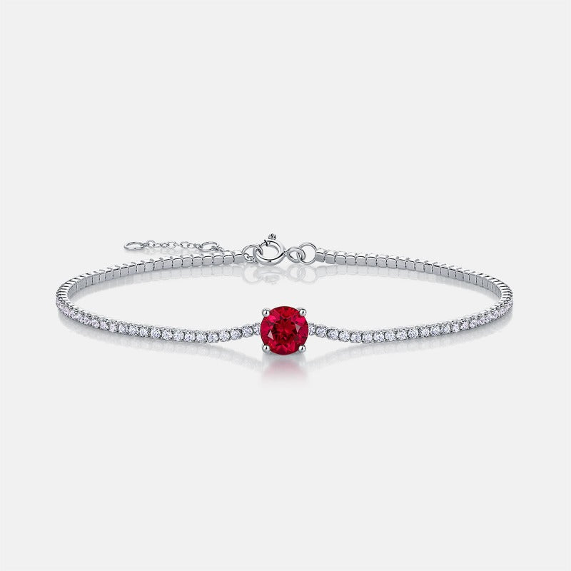 Lab-Grown Gemstone Bracelet Round Ruby Colombian Paraiba Four-Prong 925 Sterling Silver CZ Accents Christmas Gift NoFade Quality