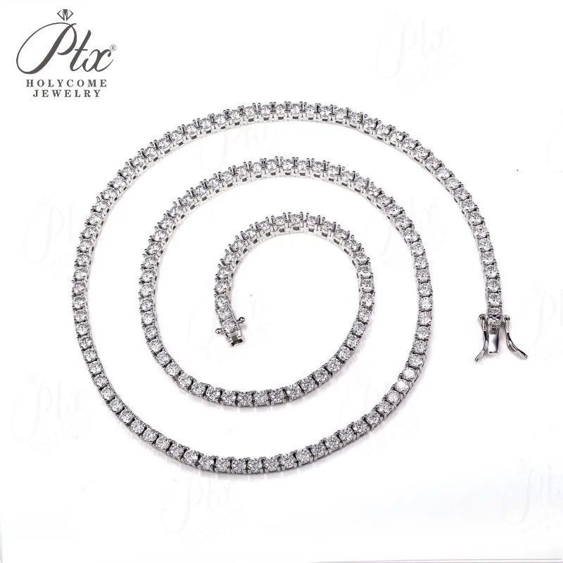 Moissanite Tennis Necklace 925 Sterling Silver D VVS1 Round Cut 2mm-6.5mm Factory Direct Hip Hop Jewelry 16-24inch for Men Women