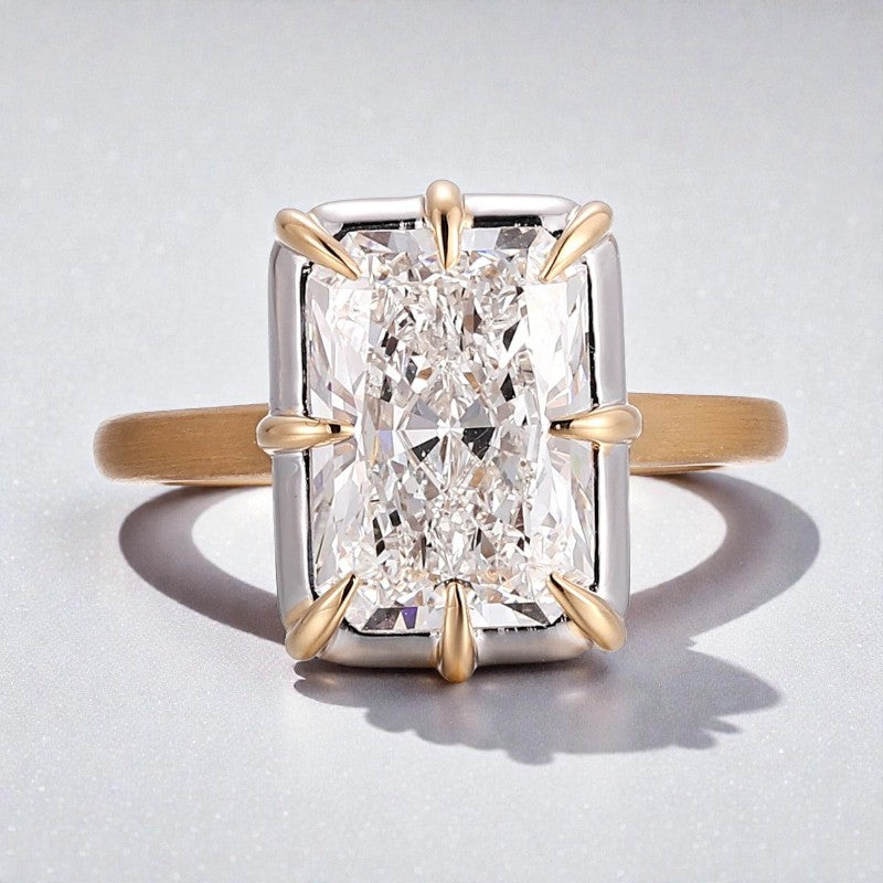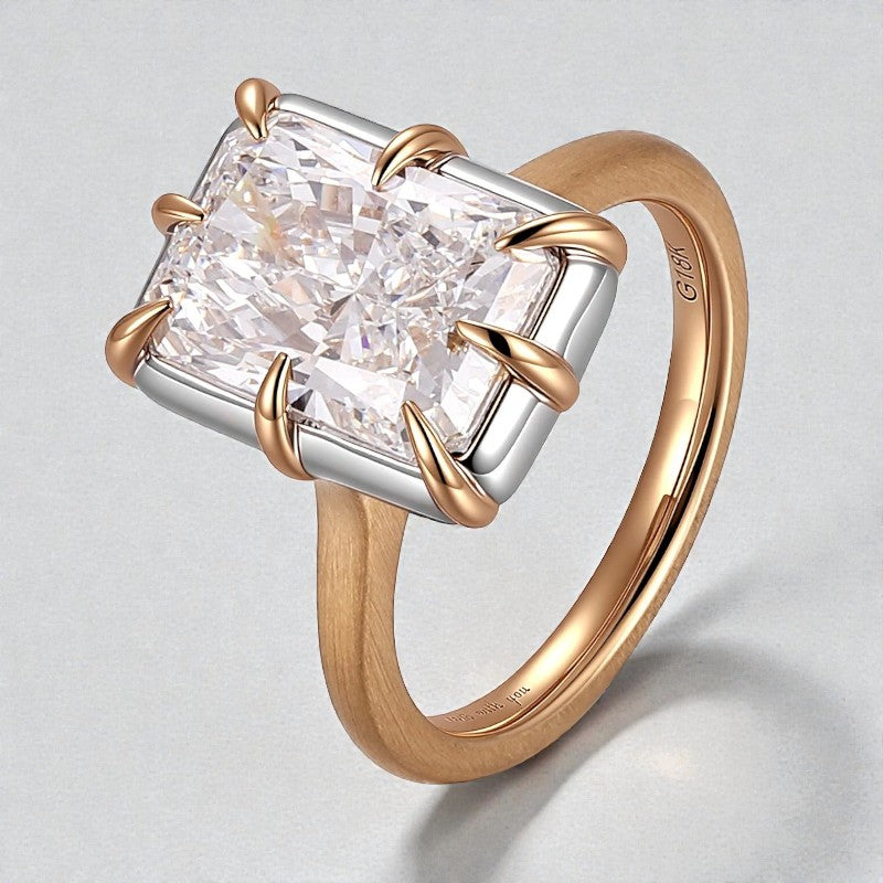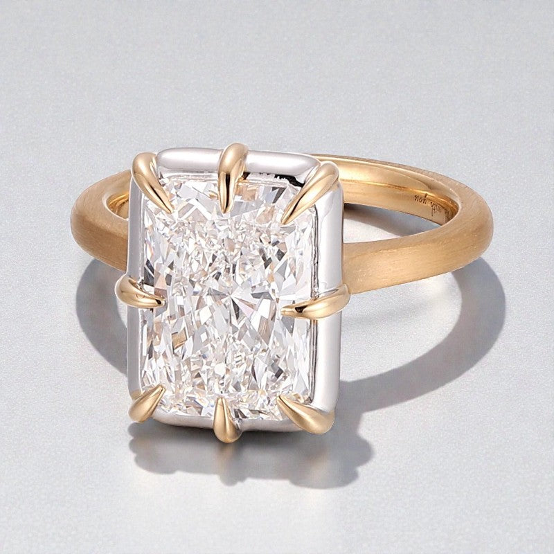Radiant Cut Ring with 5CT D Color Moissanite Diamond 10k 14k 18K Gold Plated 925 Silver for Women Man Engagement Wedding Jewely