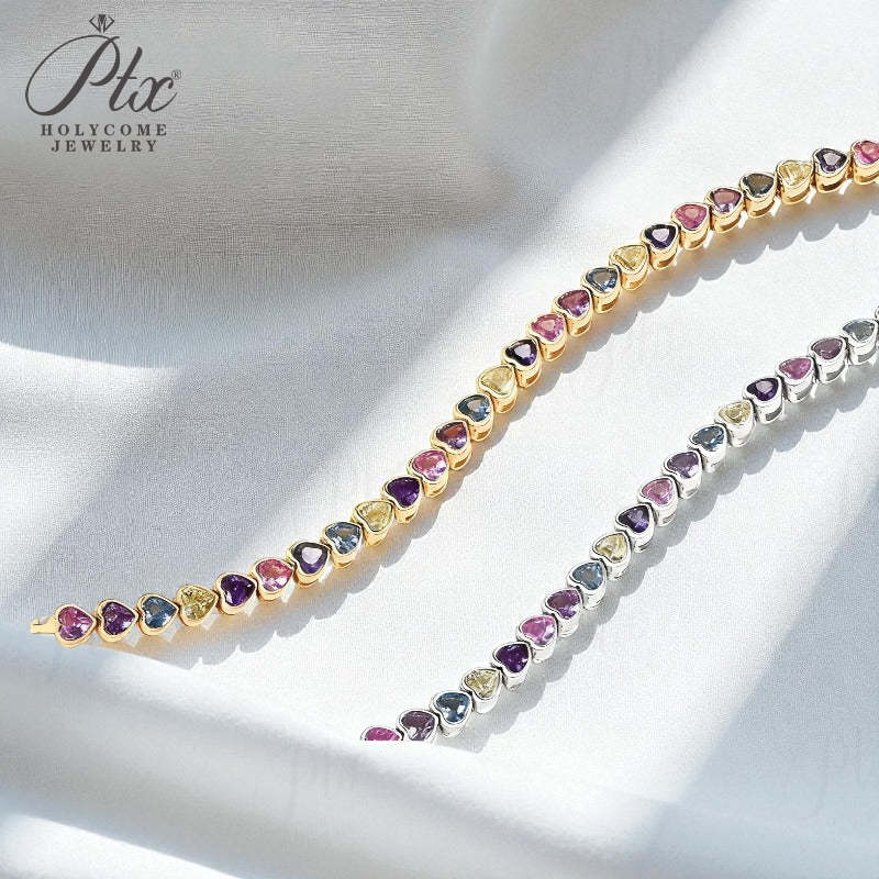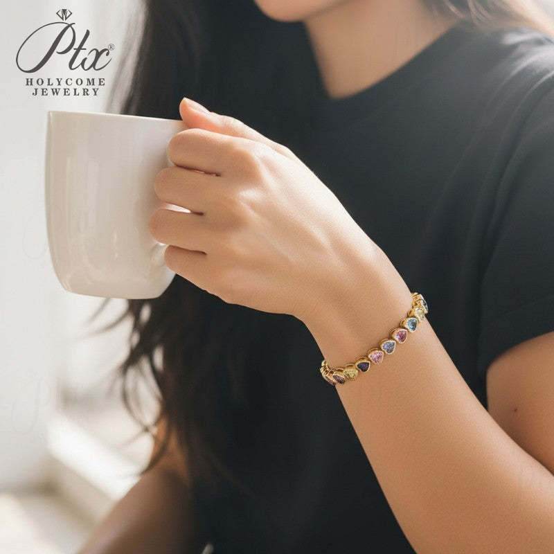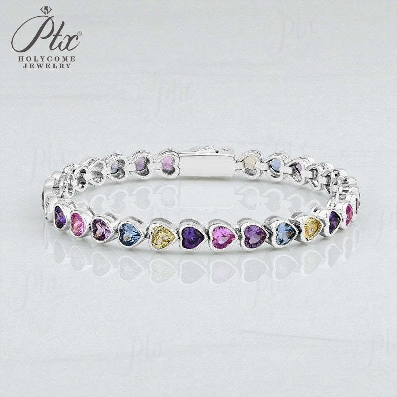 Rainbow Zircon Bracelet Heart Cut Stones Bright Multi-Color Shine Trendy Adjustable Fashion Accessory for Women Gift-Giving