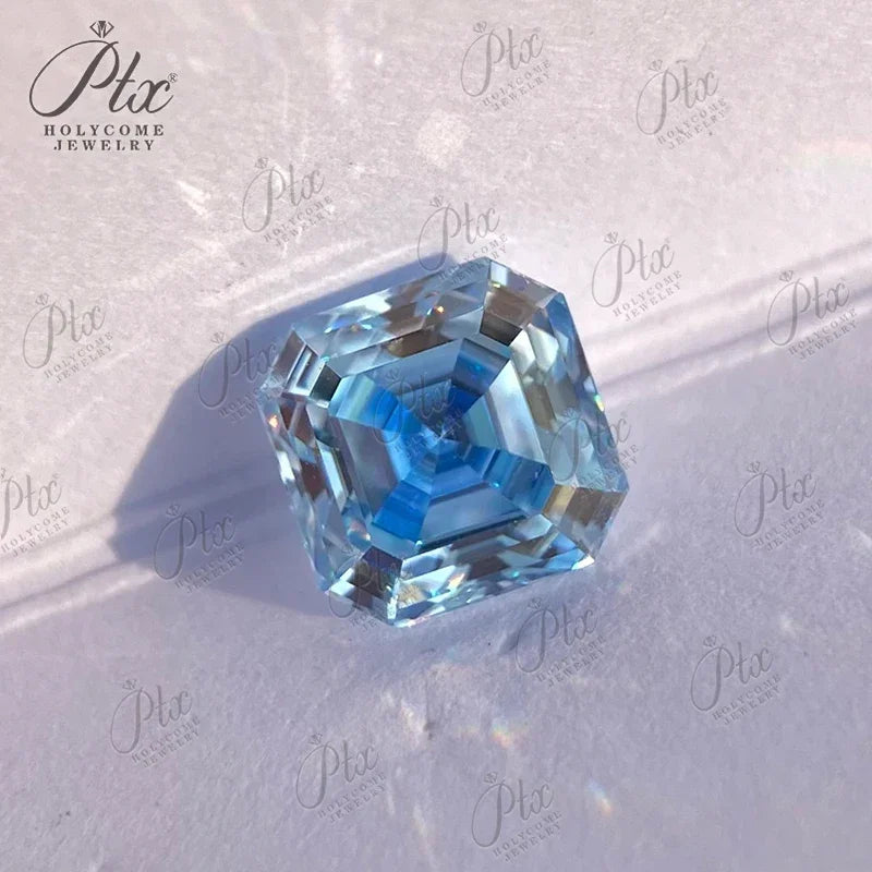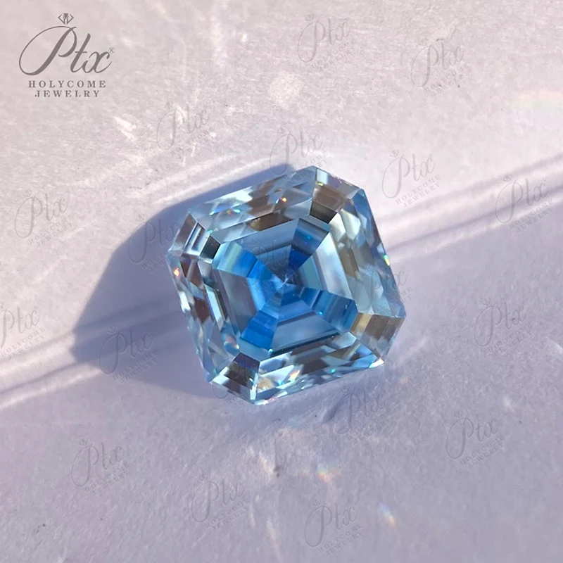 Moissanite Ice Blue Brilliant Gemstone Asscher Cut Lab Grow Diamond Advanced Jewelry Making Material GRA Pass Diamond Test