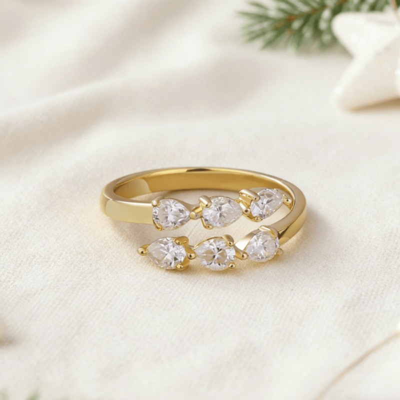 1.8CT Moissanite Pear Cut Minimalist Open Ring White Gold Yellow Gold Rose Gold Radiant Light Women Fine Jewelry
