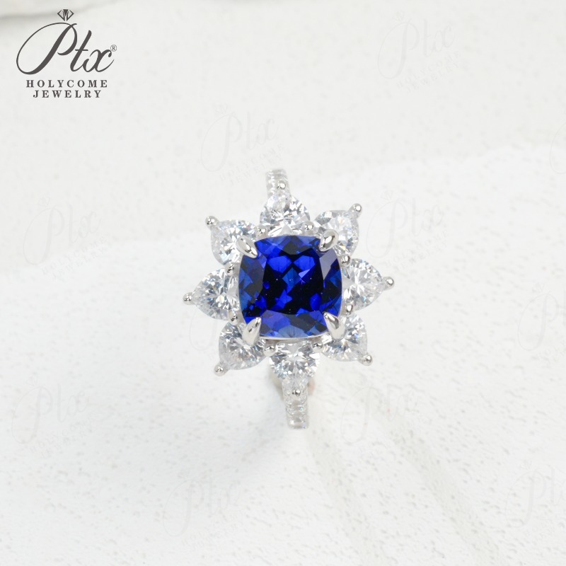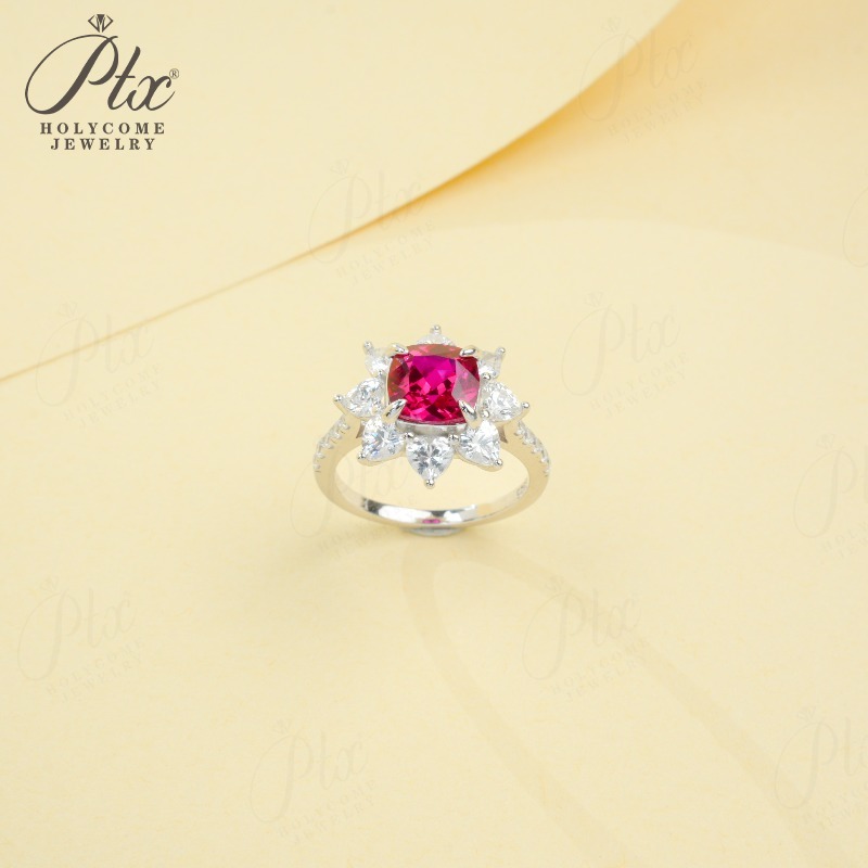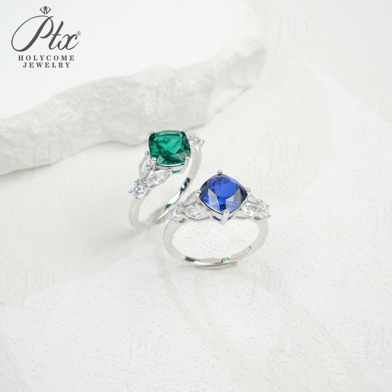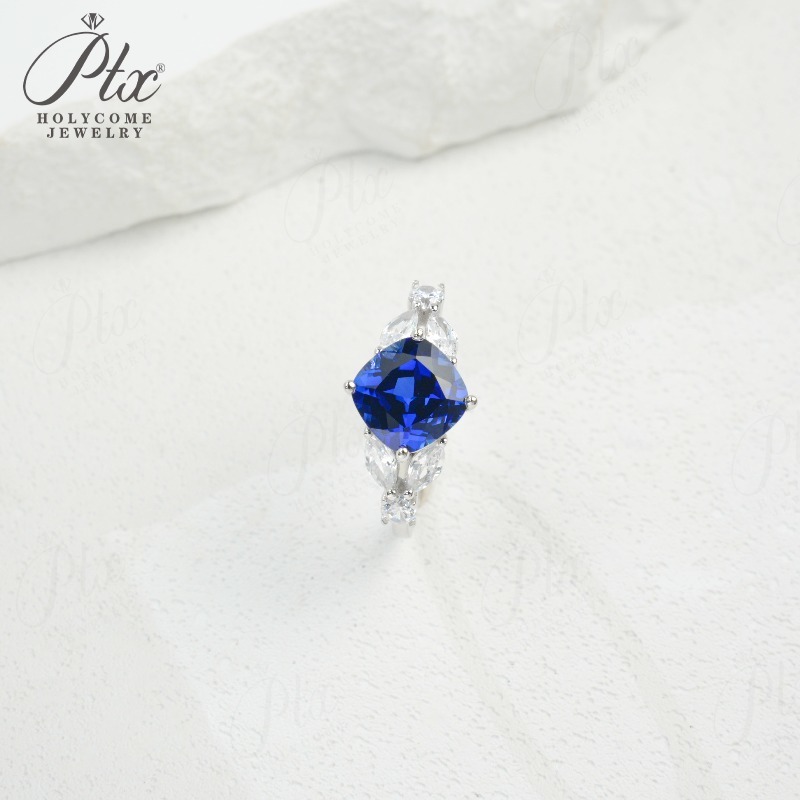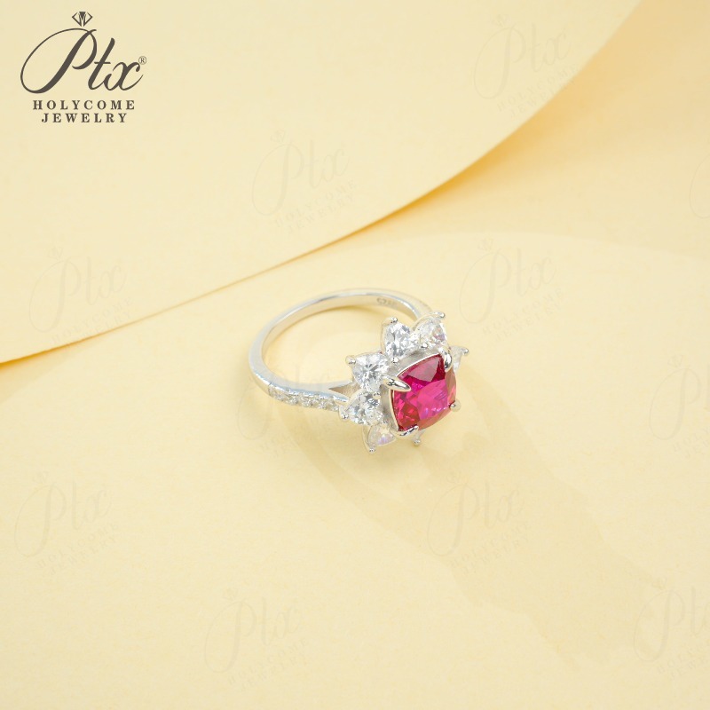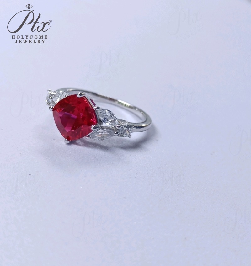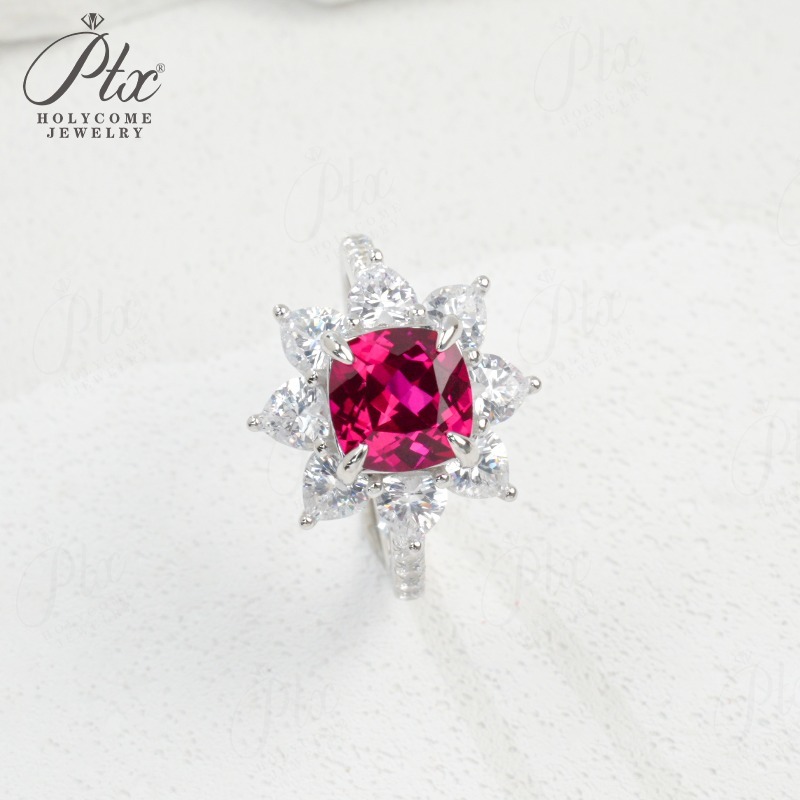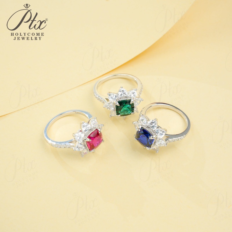 Customize Ring Cushion Cut Lab Grown Ruby Sapphire Columbia 925 Silver No Fade Hypoallergenic Anniversary Gifts Party Banquet