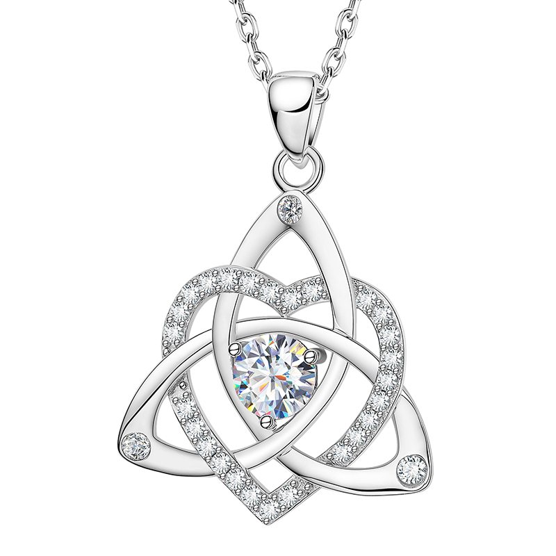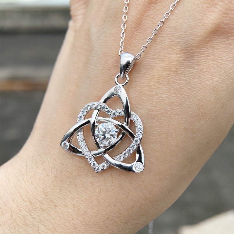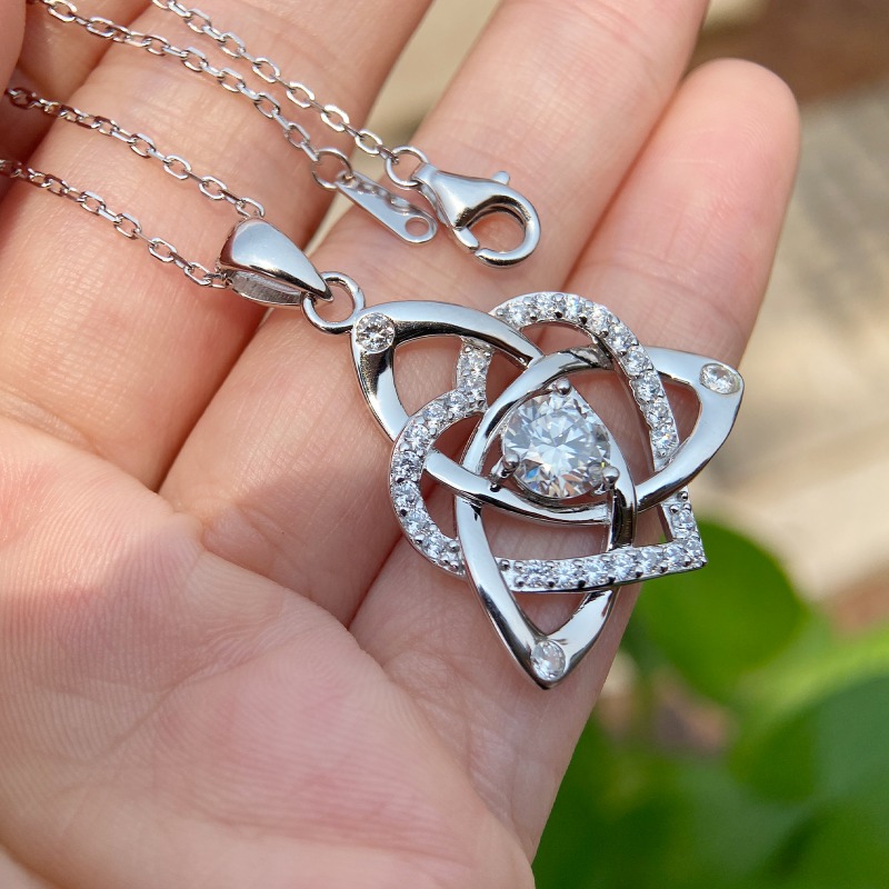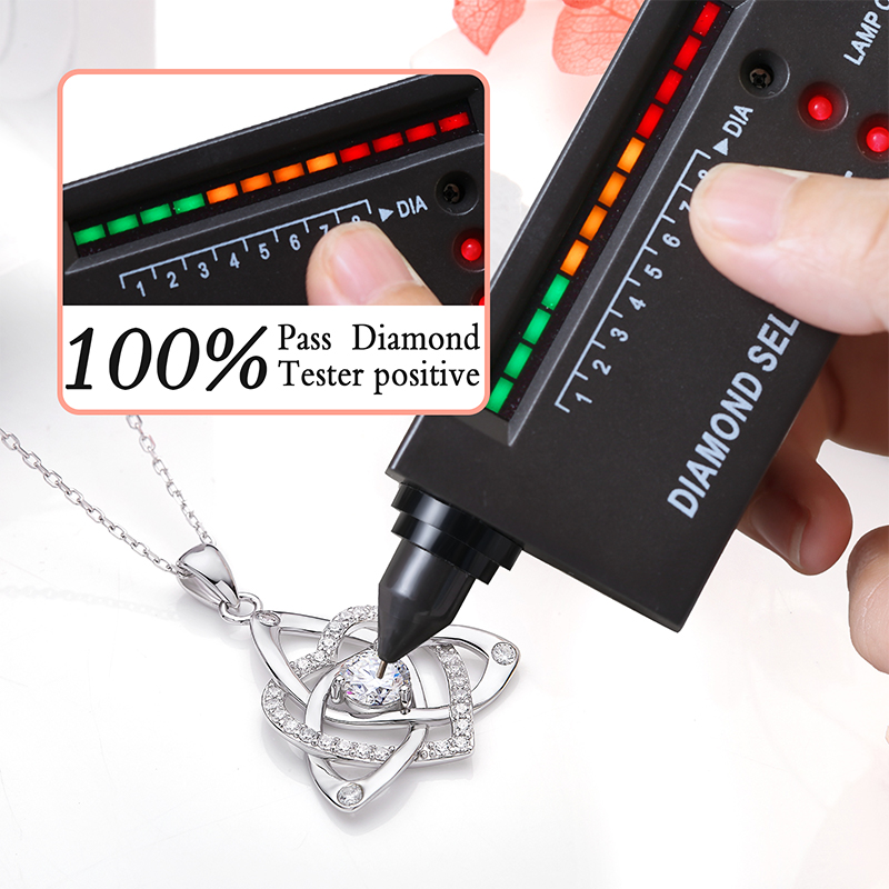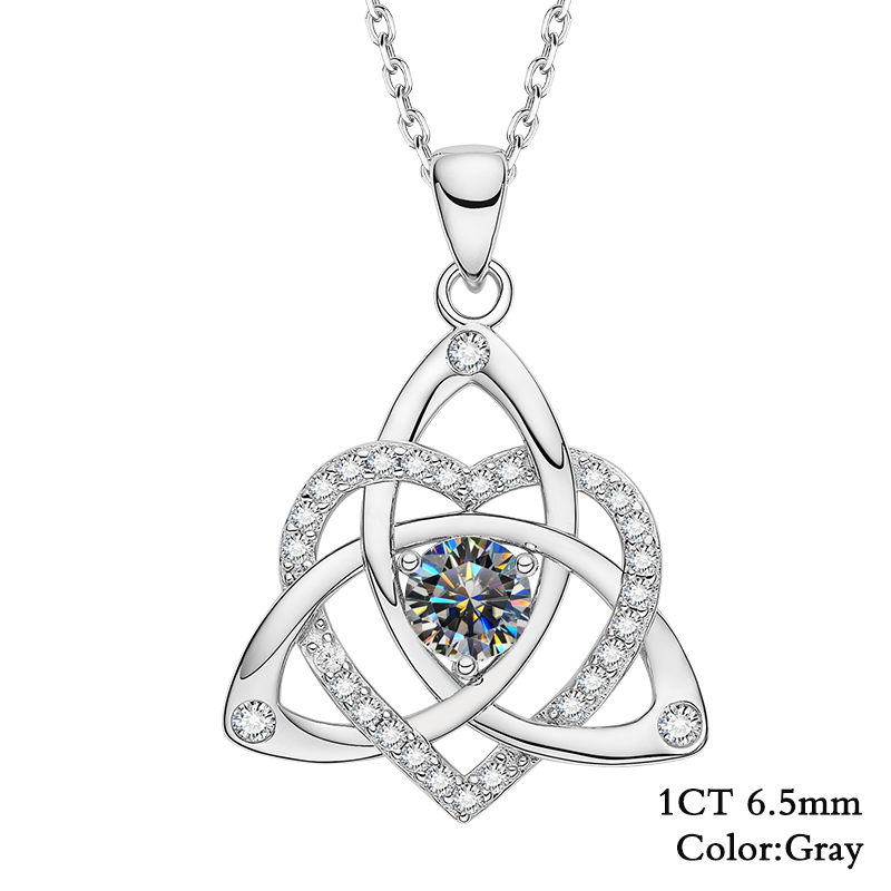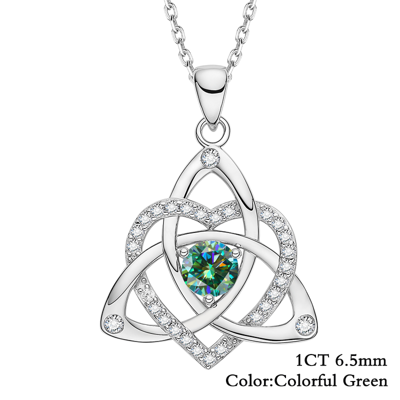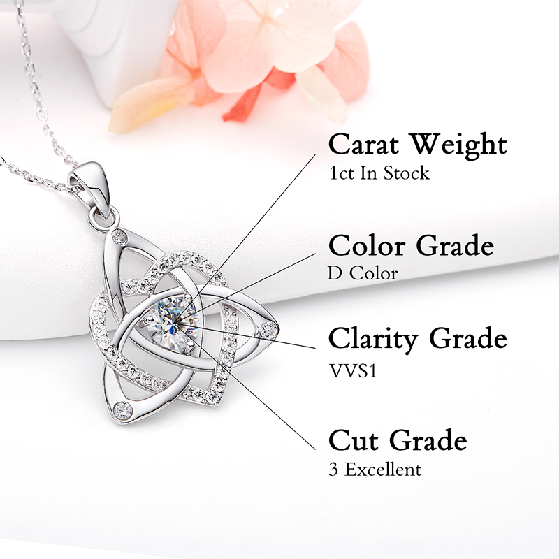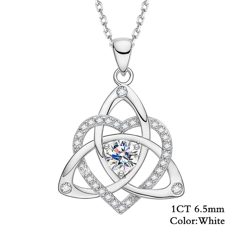 Heart-shaped Clover Necklace 925 Sterling Silver with Moissanite Round Cut VVS1 Jewelry Gift for Women’s Special Occasions