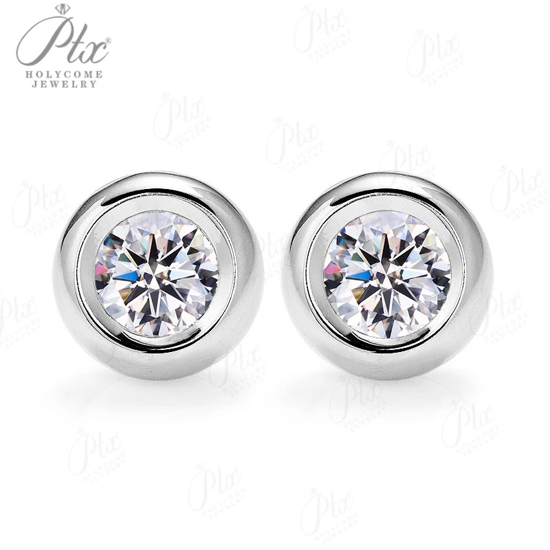 Name: Round Shape Bubble Moissanite S925 Silver Earrings with White Gold Plated