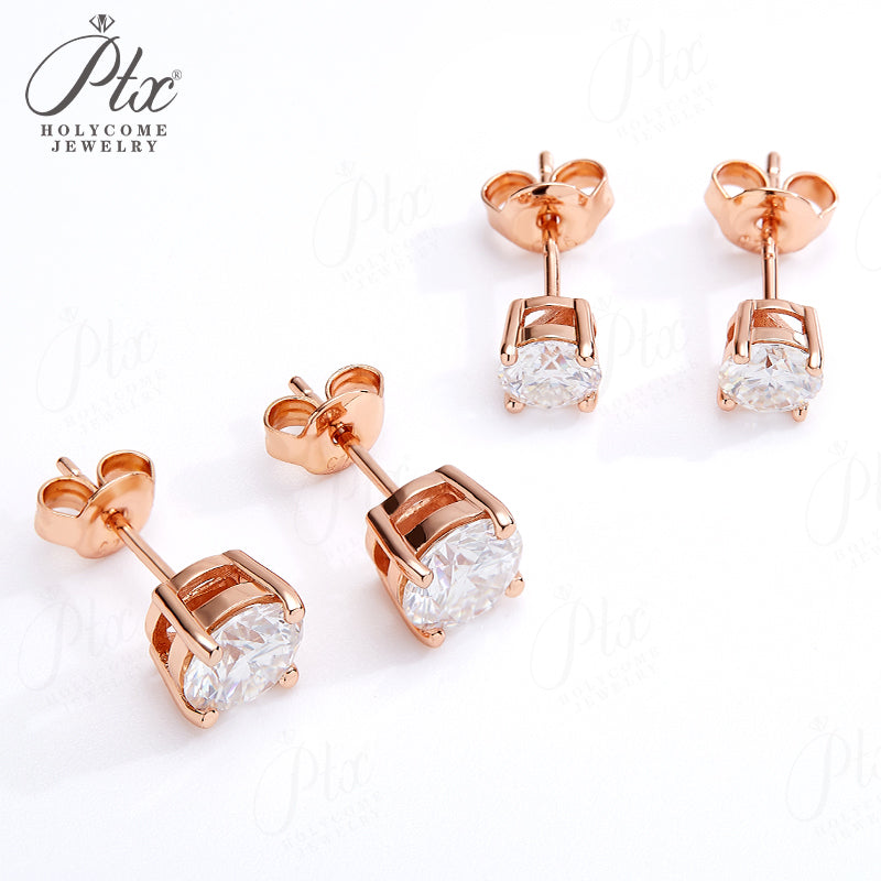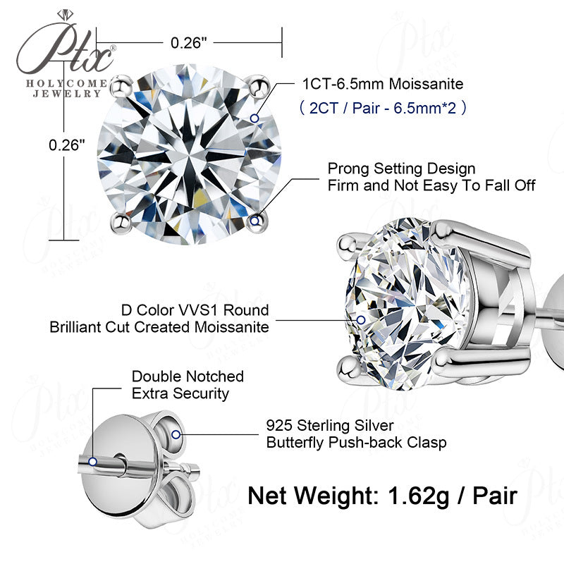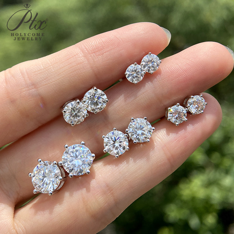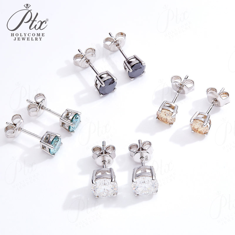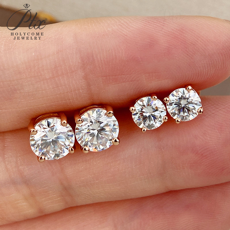 Classical Style 4 Claws Setting Round Brilliant Cut Moissanite Ear Studs D Color Moissanite Ear Jewelry