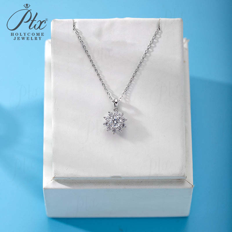 【 Daisy 】Round Cut 1CT Moissanite Sunflower Pendant Necklace