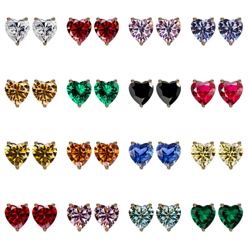 Heart Shaped Stud Earrings Lab Grown Gemstones Ruby Sapphire Emerald S925 Sterling Silver GRA Certificate Charms Birthday Gift