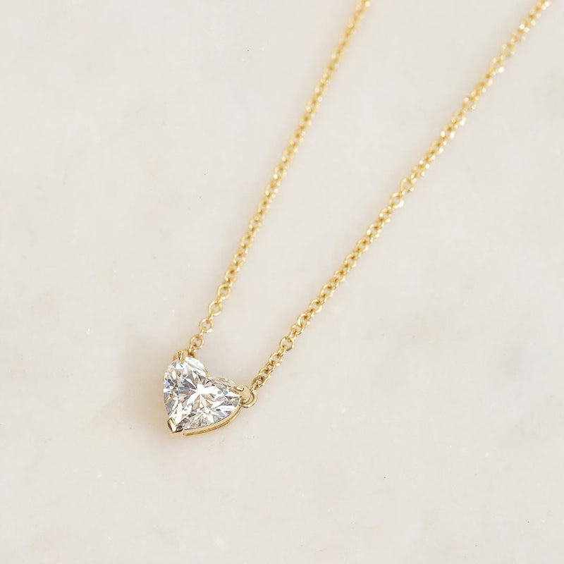 Heart Ring Pendant Necklace 5Prongs 10k 14k 18k Gold Moissanite Diamond Engagement Proposal Wedding Band Certificate Charms