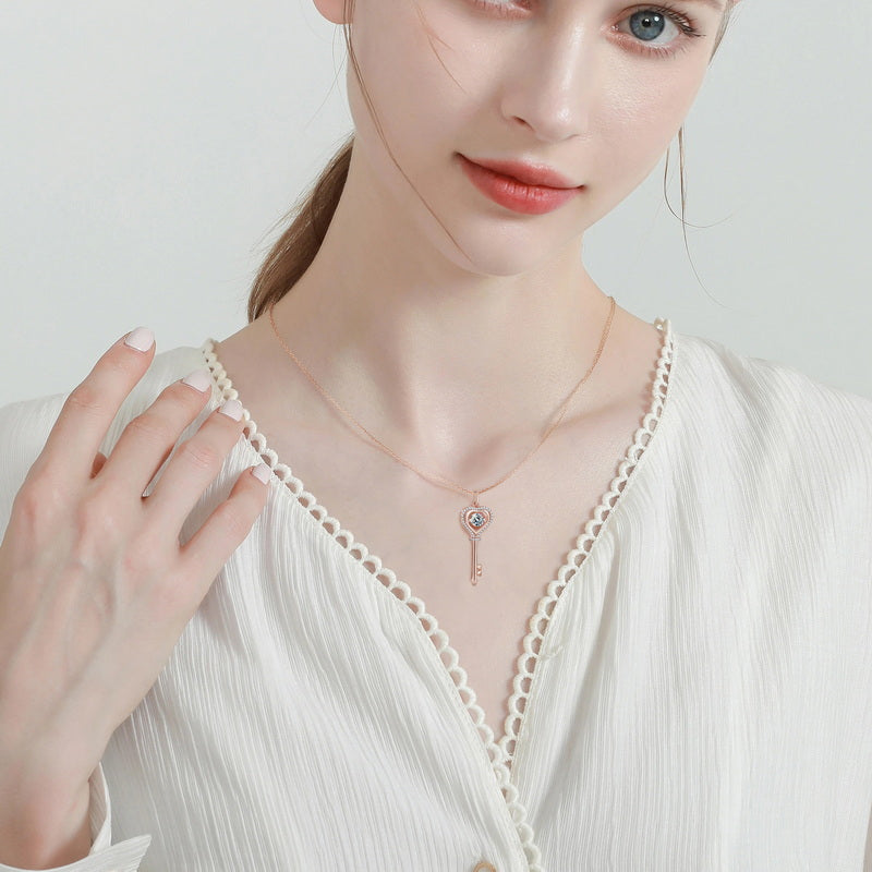 Moissanite Necklace Key D color 6.5mm 1ct 925 Sterling Silver Top Quality Pendant For Women Wedding/Anniversary Special Gift