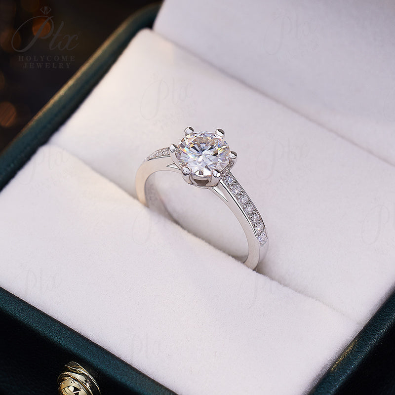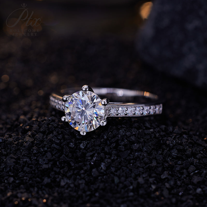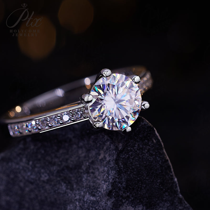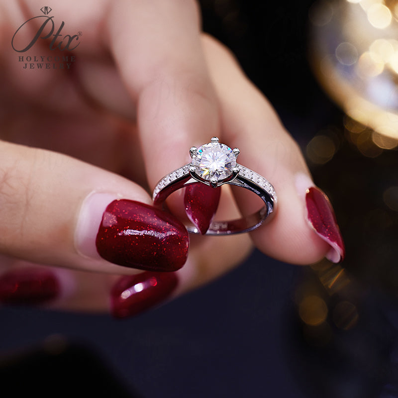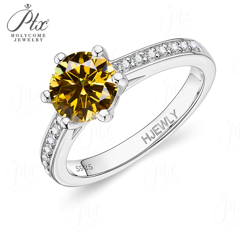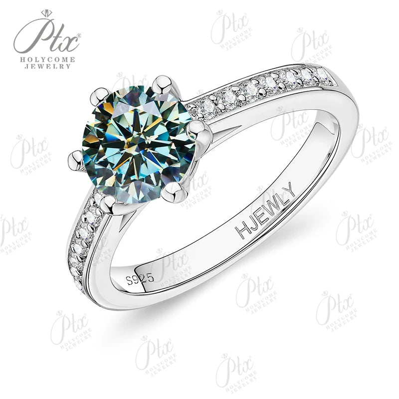 Moissanite Ring 6 Claws Silver Ring 12 Colors Round 1CT 925 Sterling Sliver Fine Jewelry Birth Stones Wedding Gift Jewel Ring