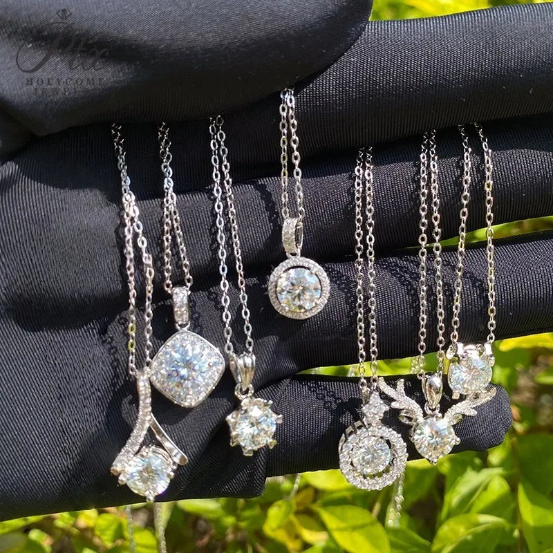 Moissanite Round Cut Necklace Multi-Design Pendant Women Fashion Jewelry Radiant Shine Gift Classic Elegant Charm Daily Wear