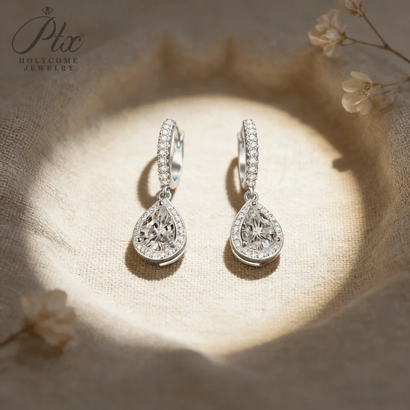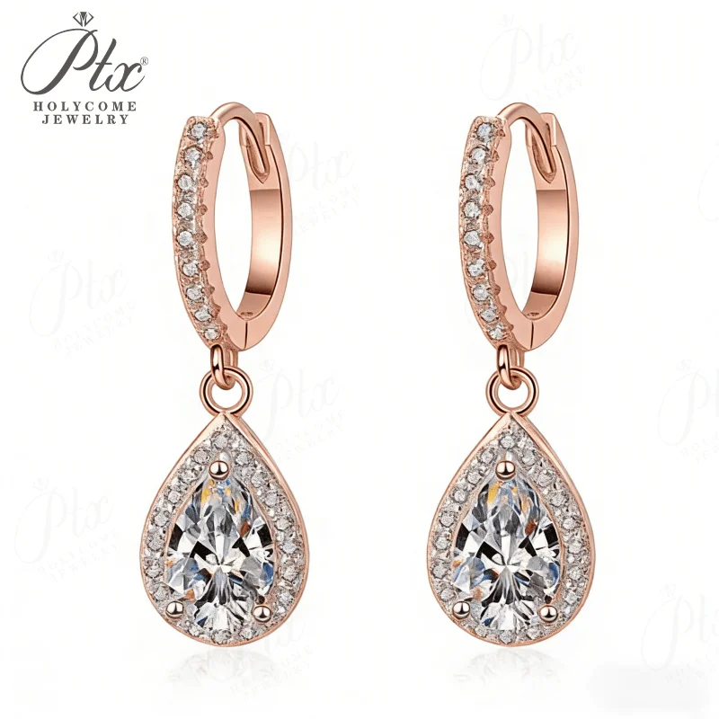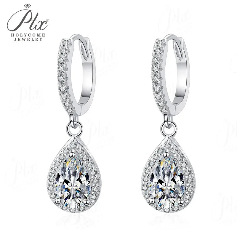 Pear-shaped Total 2CT Micro-set Pendant Earrings with Moissanite 925 Sterling Silver Jewelry for Women Radiant Flame-like Charm