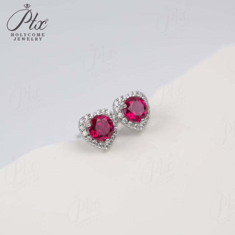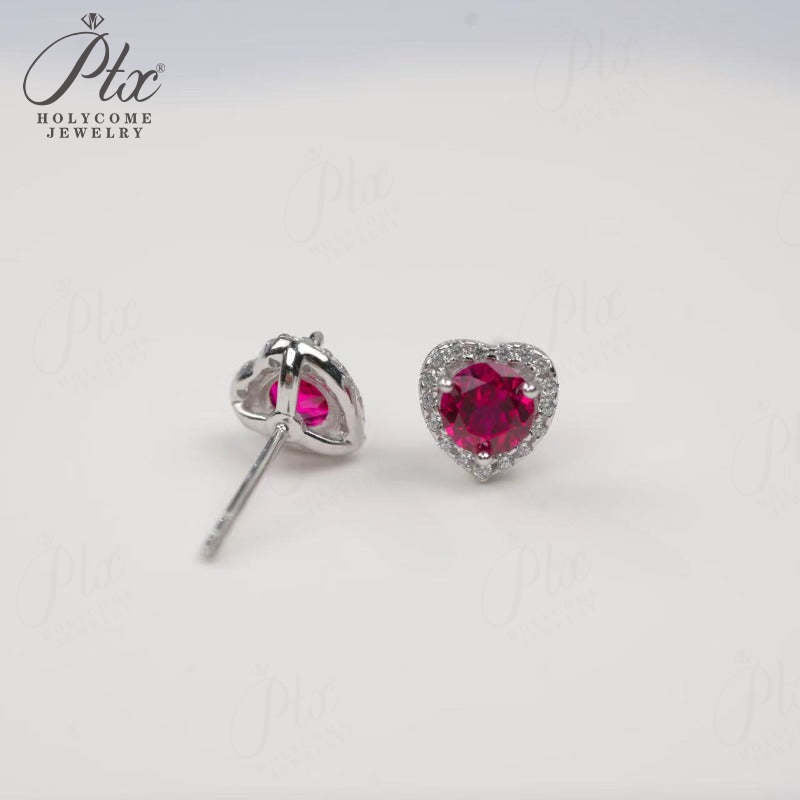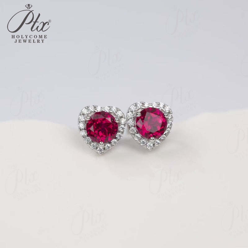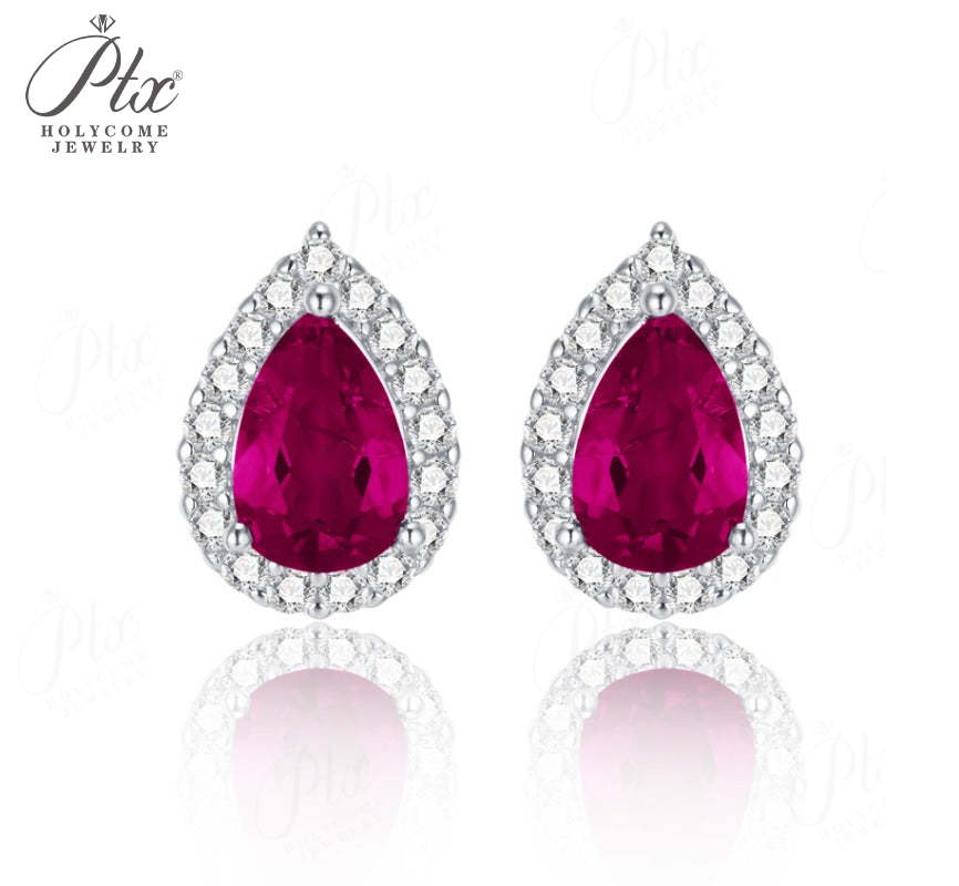 Lab Grown Gemstone Earrings Round/Heart/Heart/Pear Cuts Ruby/Sapphire 925 Silver Hypoallergenic Factory Direct Sales