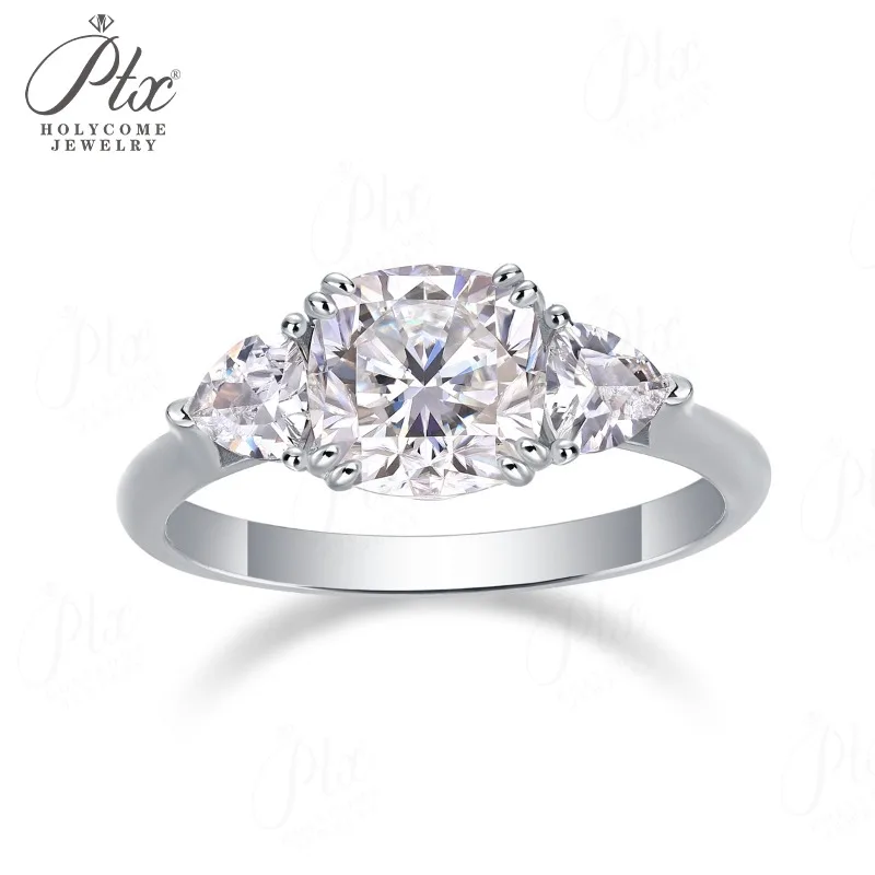 Moissanite Ring 2.6ct D Color VVS1 Cushion Cut S925 Sterling Silver GRA Certified Commute Friendly Ideal Gift For Women