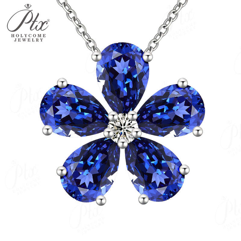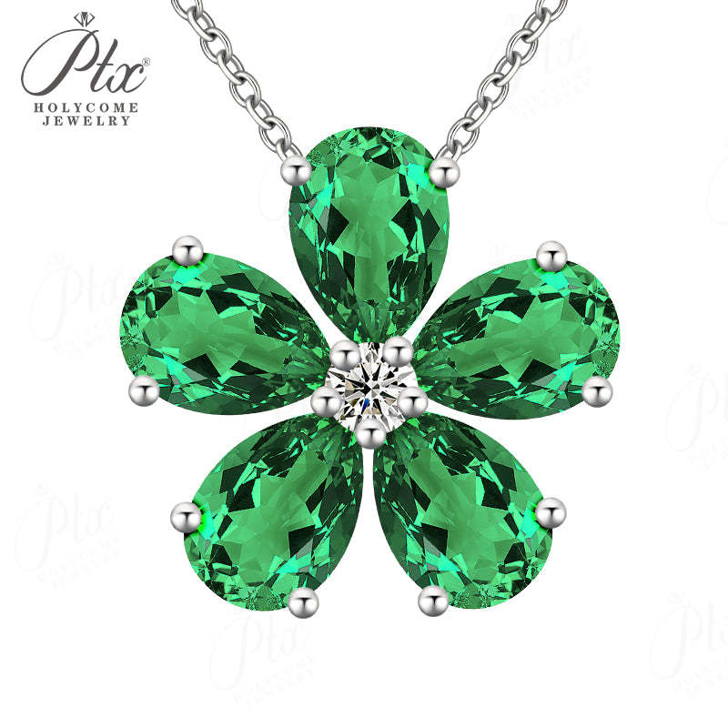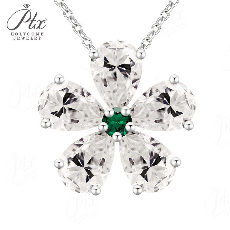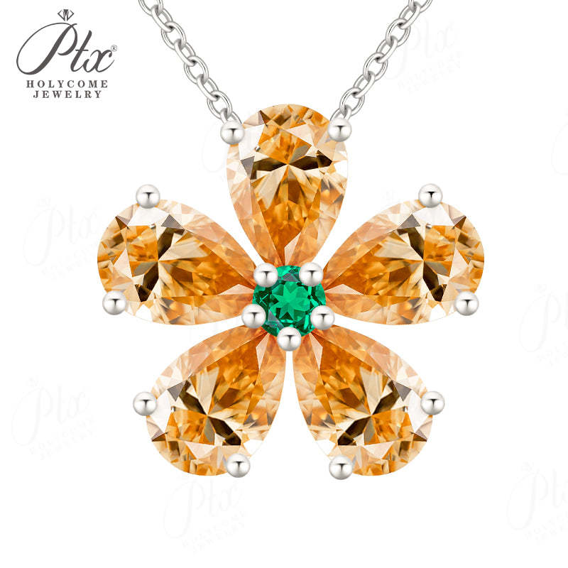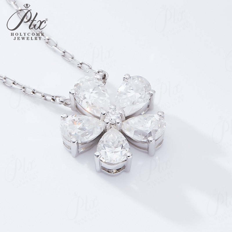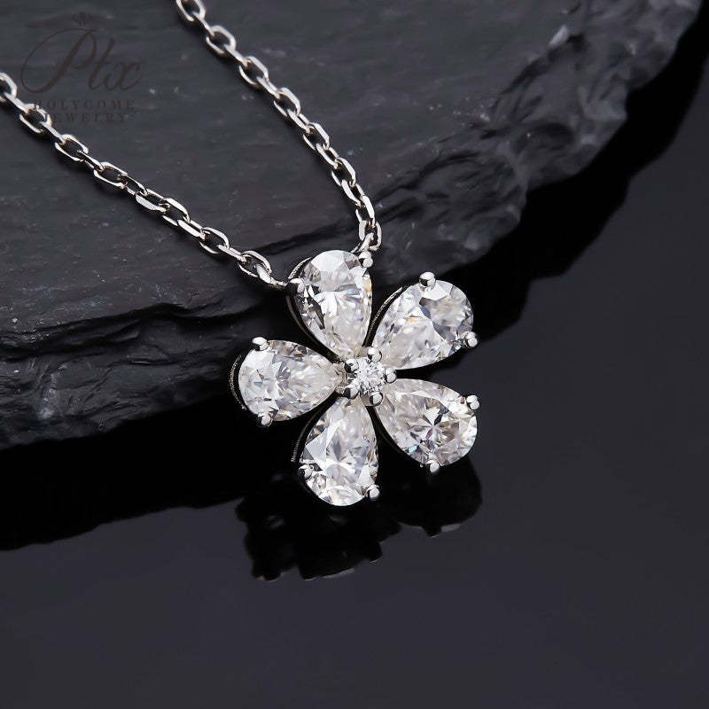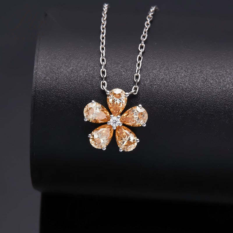 925 Sterling Silver 3EX Cut Pear Moissanite D Color Champagne VVS1 Five-petal Collarbone Necklace– Perfect for Daily Wear