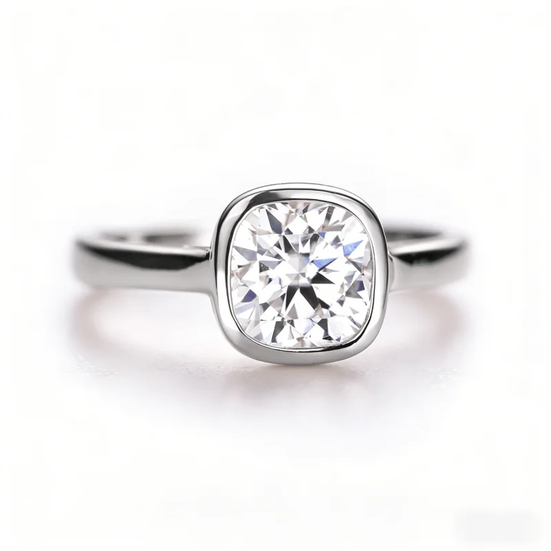 Moissanite Ring Cushion Cut 7mm D Color 925 Silver Engagement Ring A Treasure That Highlights a Woman's Elegant Temperament