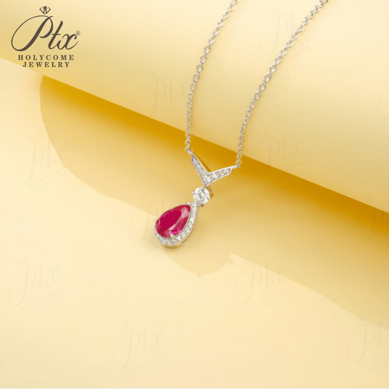 Lab-Grown Ruby Necklace with 925 Silver Vibrant Pear-Cut White Pendant Stackable Exquisite Jewelry for Women