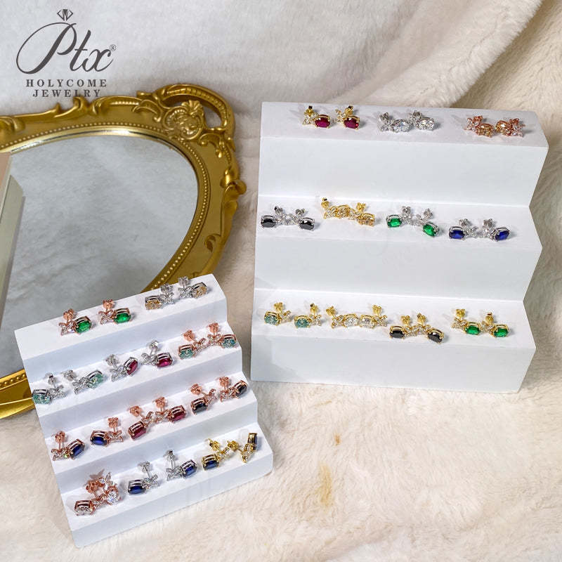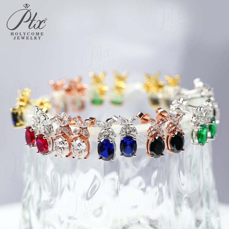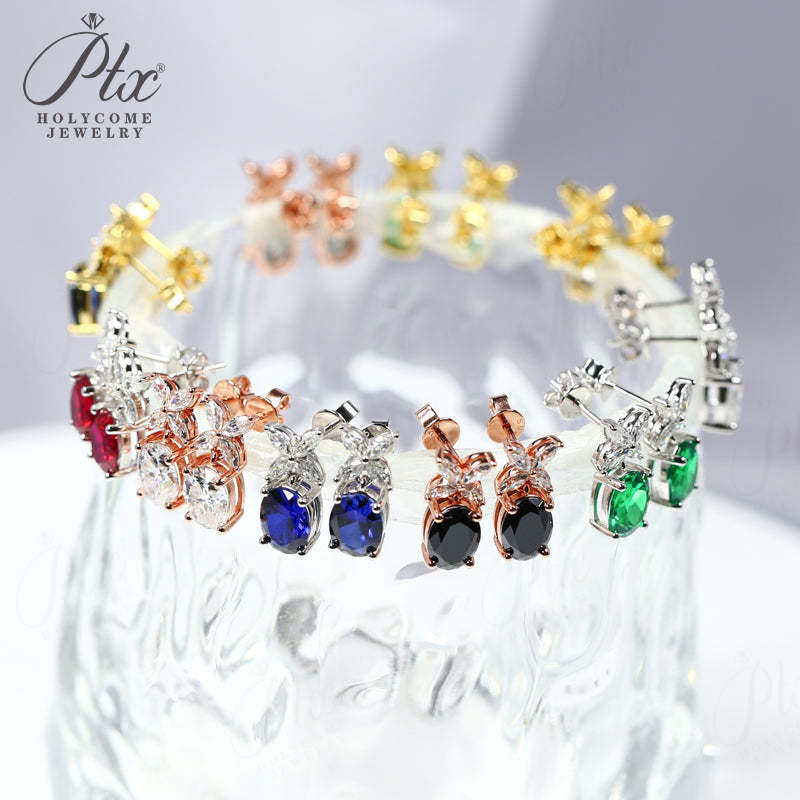 Moissanite Earrings Emerald/Ruby/Sapphire Styles 925 Silver Gift-Ready Hypoallergenic Fade-Resistant Factory-Direct Women Only