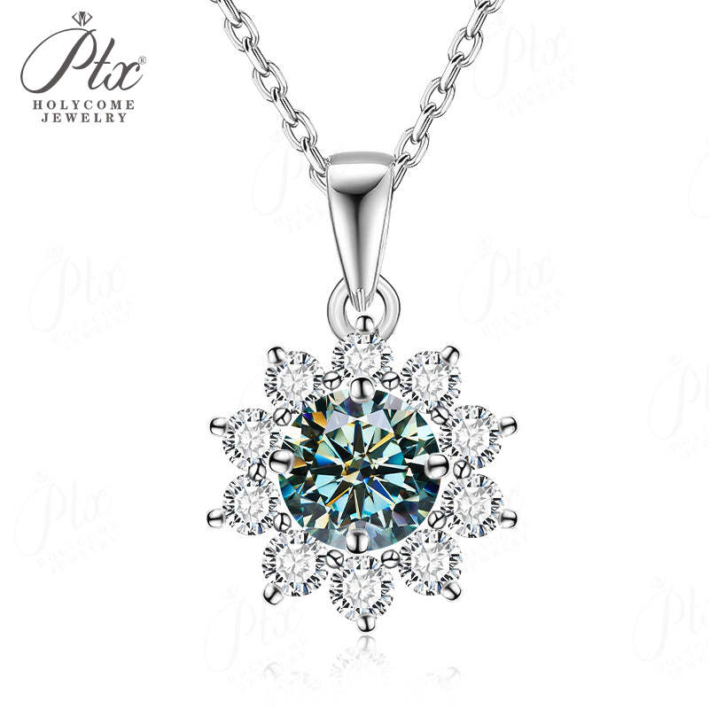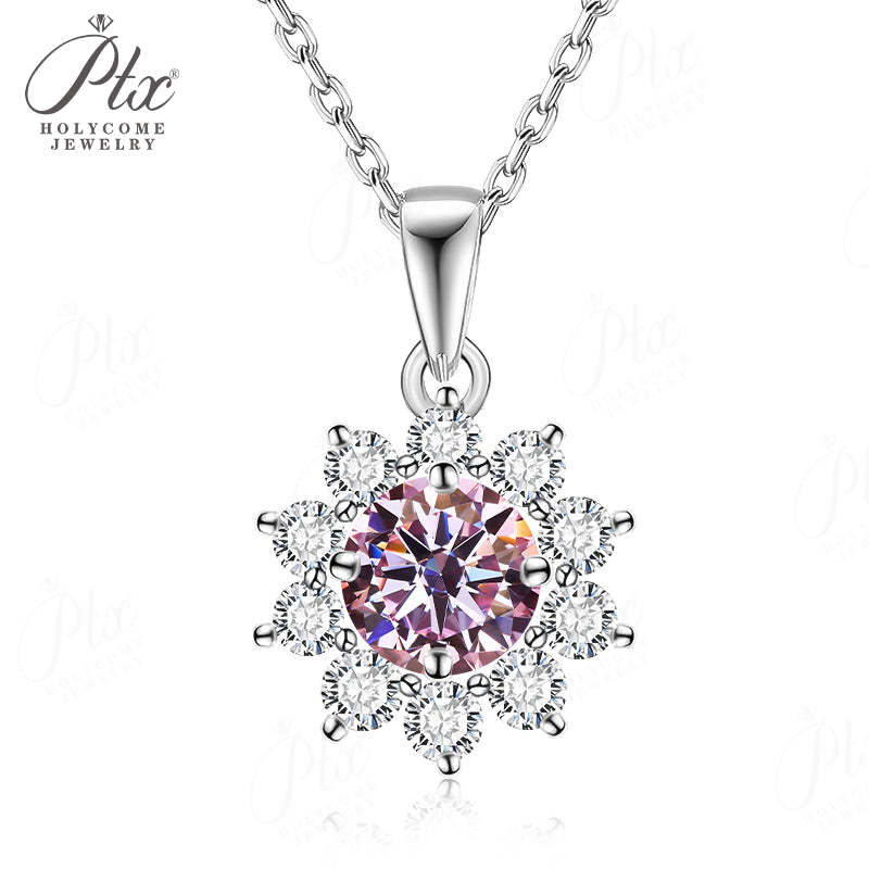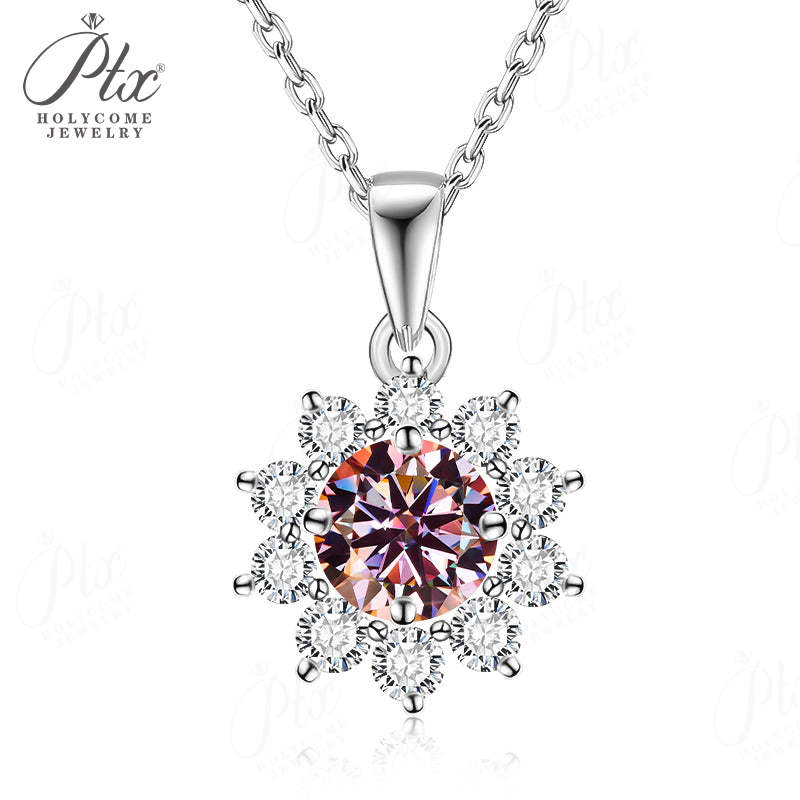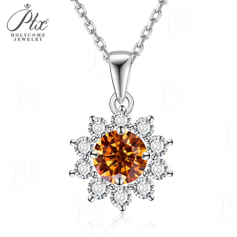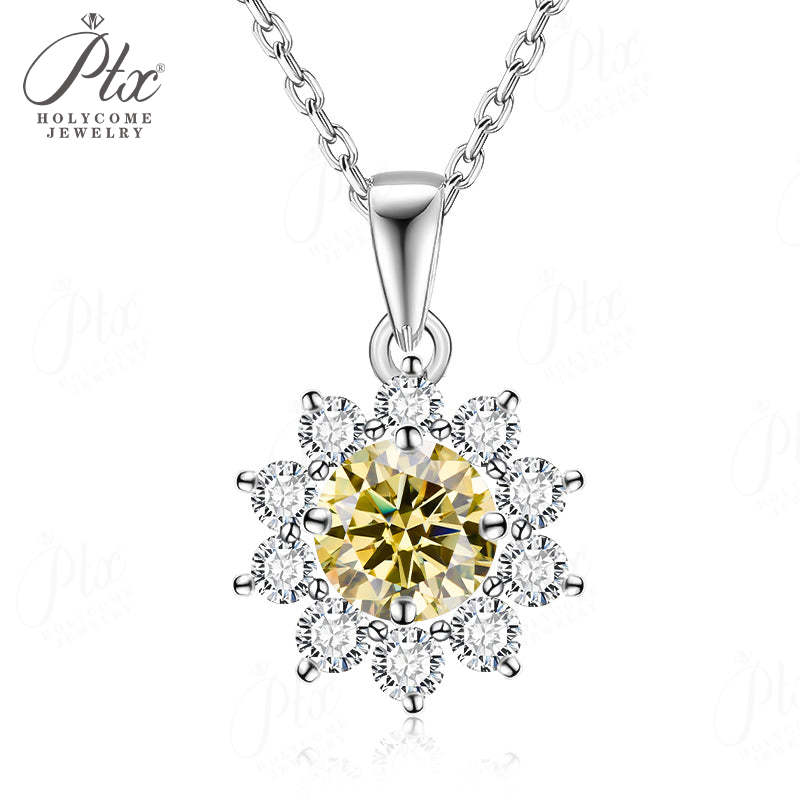 Moissanite Necklace Sunflower Pendant Multicolor Round Cut 1ct Women Wedding Party Engagement Special Gifts Charms Fine Jewelry