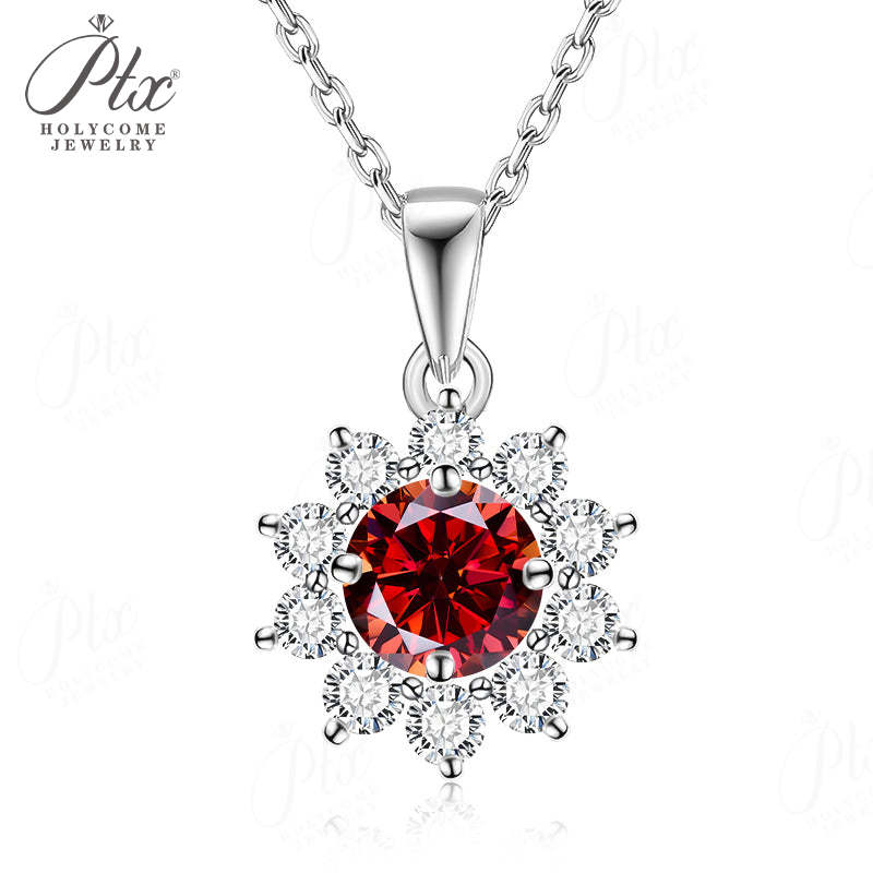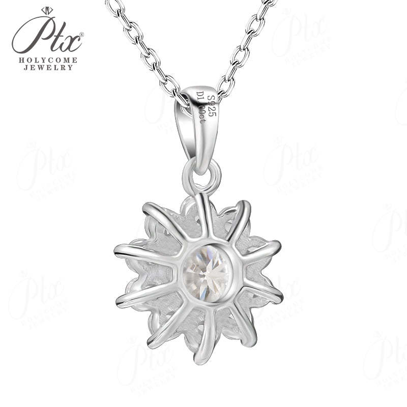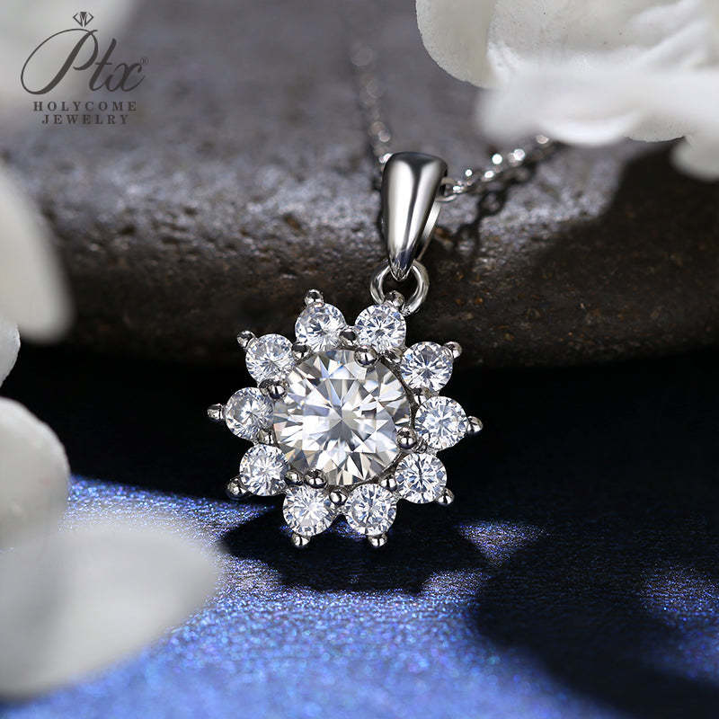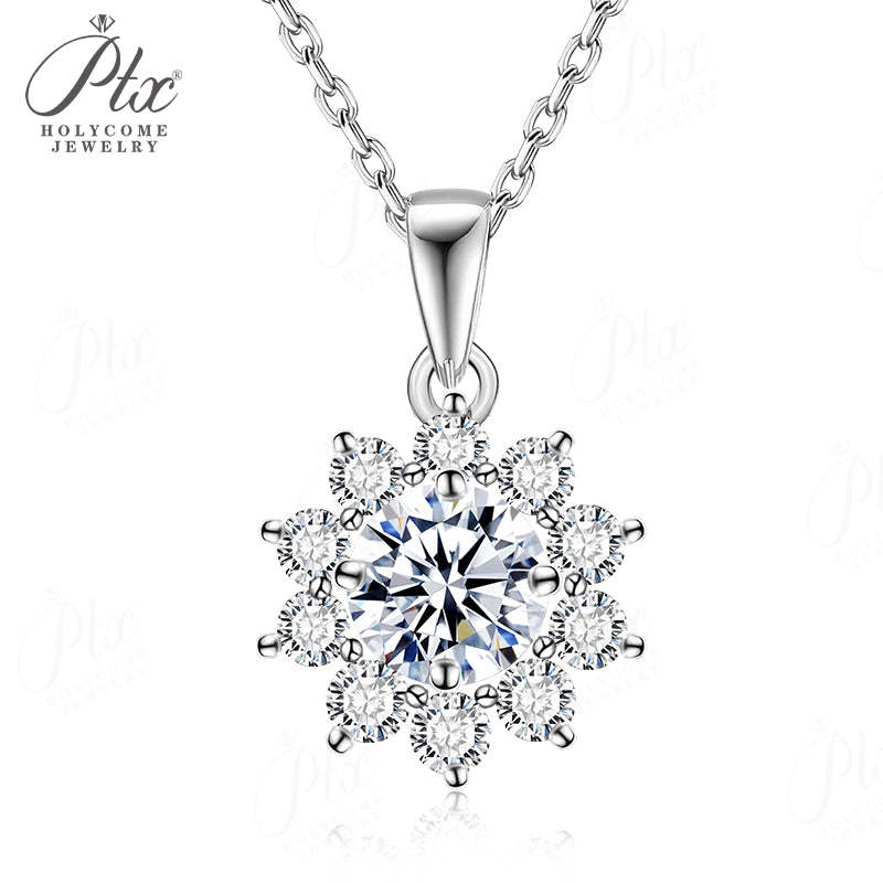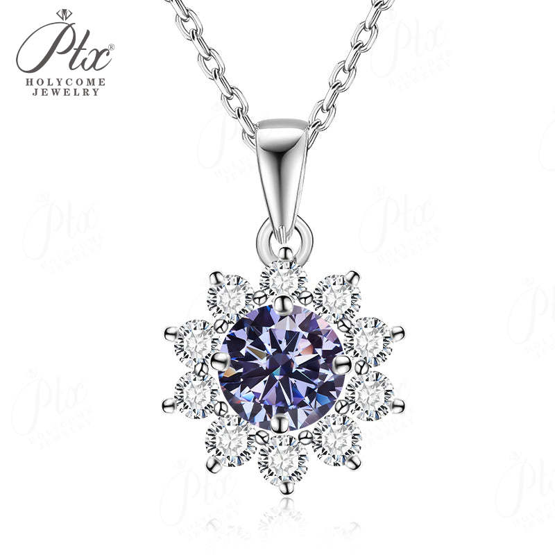 Moissanite Necklace Sunflower Pendant Multicolor Round Cut 1ct Women Wedding Party Engagement Special Gifts Charms Fine Jewelry