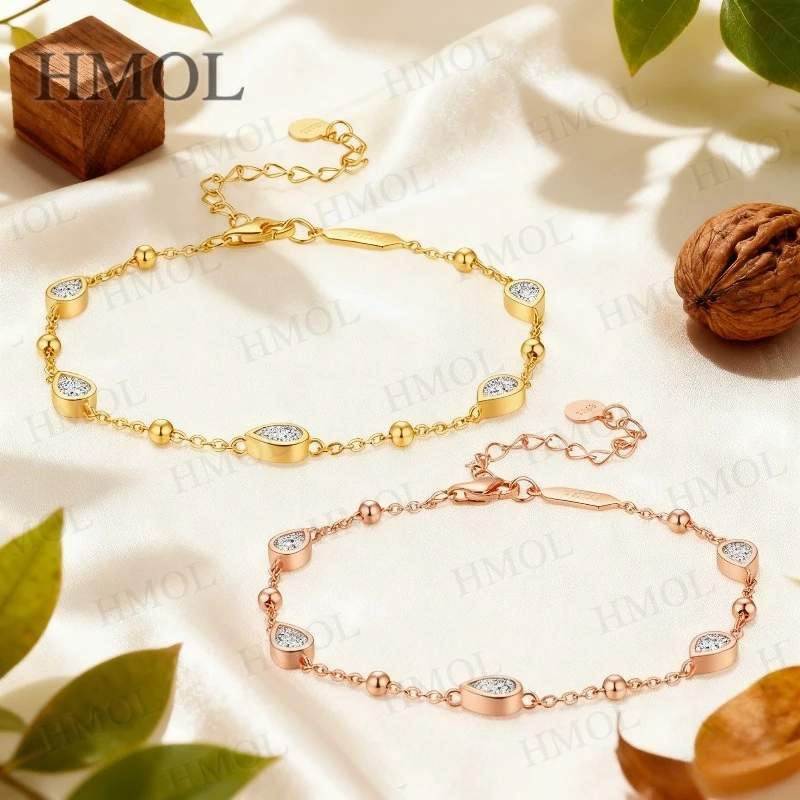 Elegant Moissanite Teardrop Bracelet Pear Shape Gem Beaded Chain Chic Women’s Everyday Jewelry Delicate Shine Fashion Gift