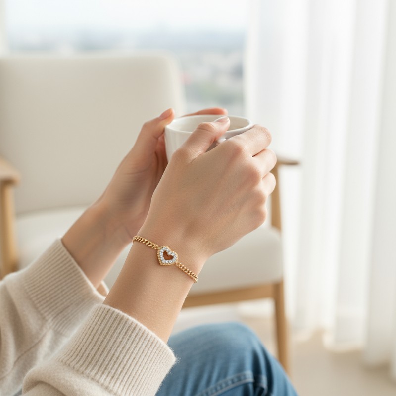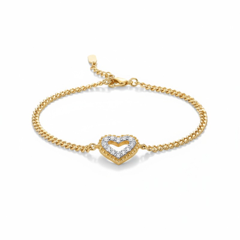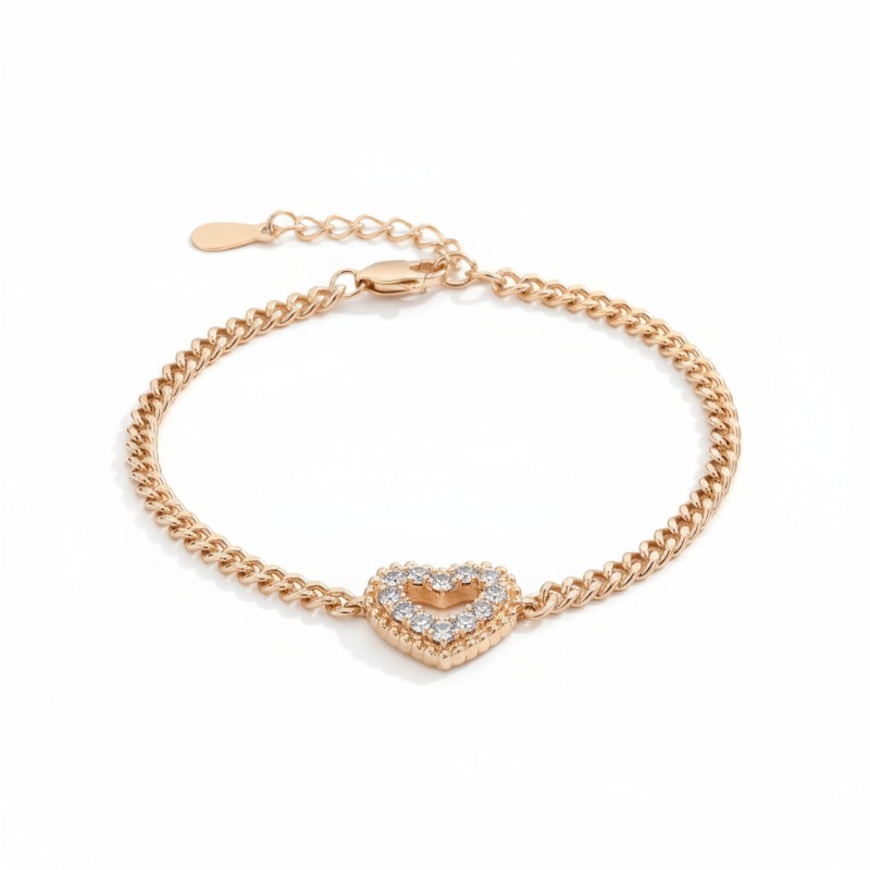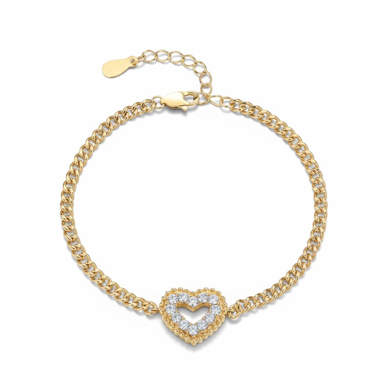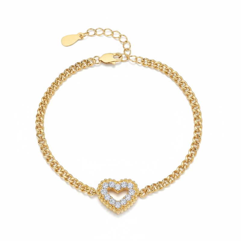 Heart Bracelet with 2mm Round Moissanite Diamond 925 Silver Plated White Yellow Gold Women's Daily Fishion Jewely Gift Favorite